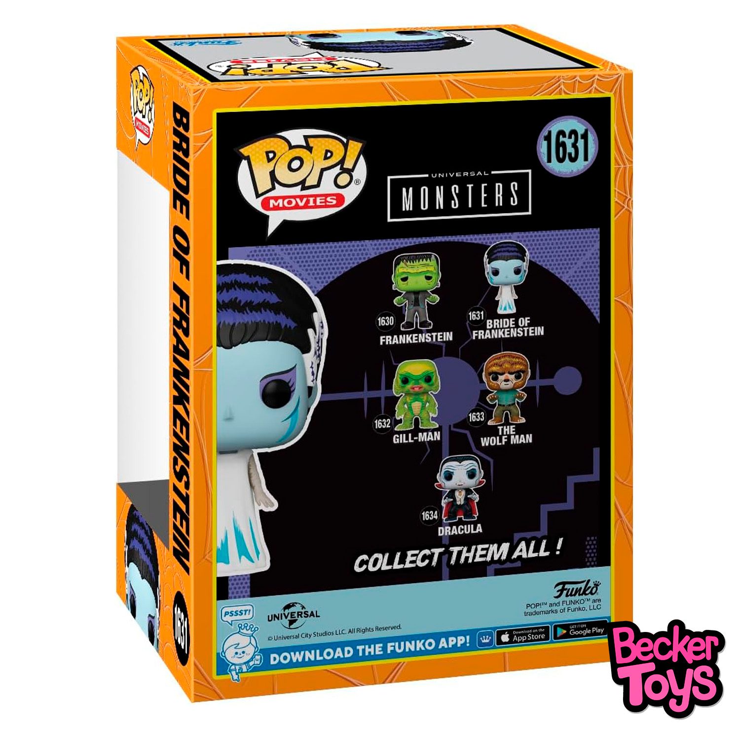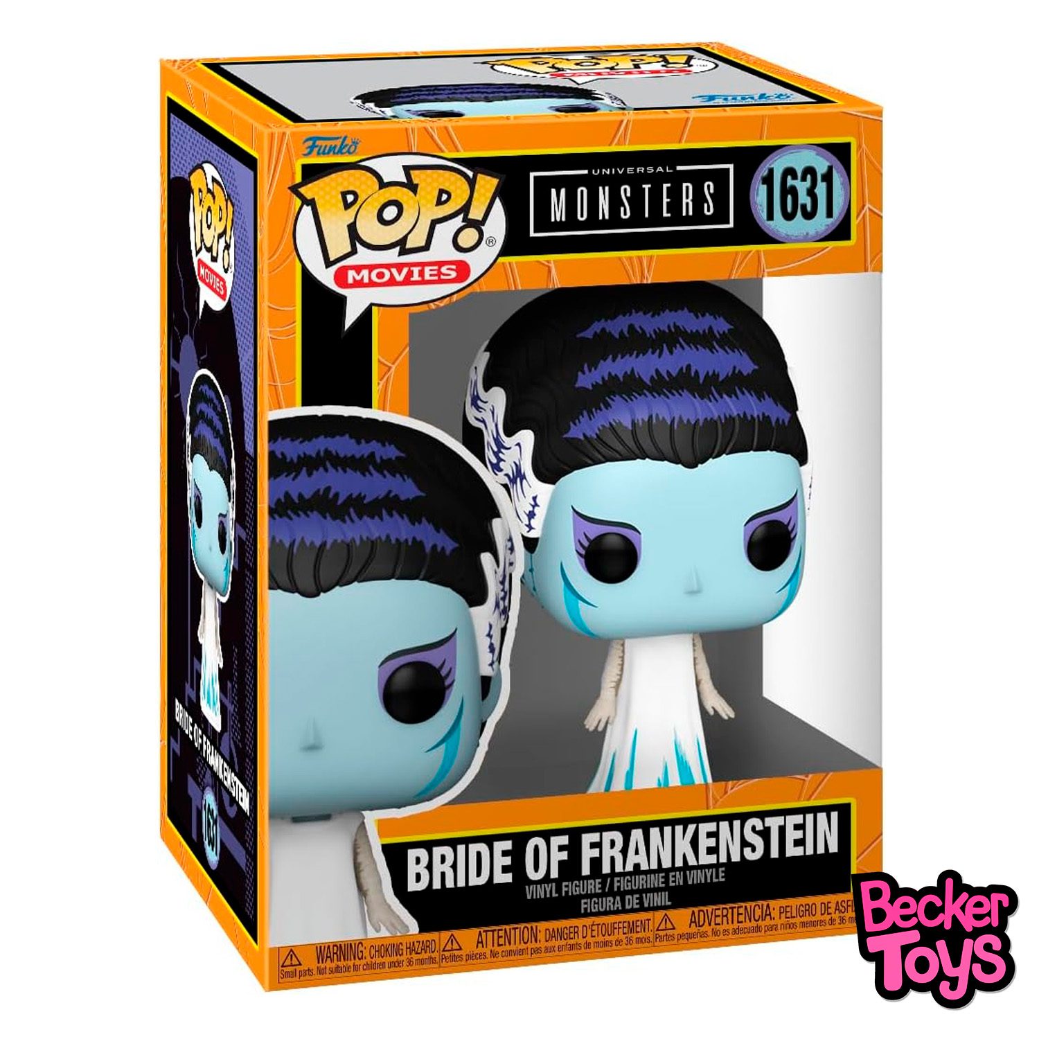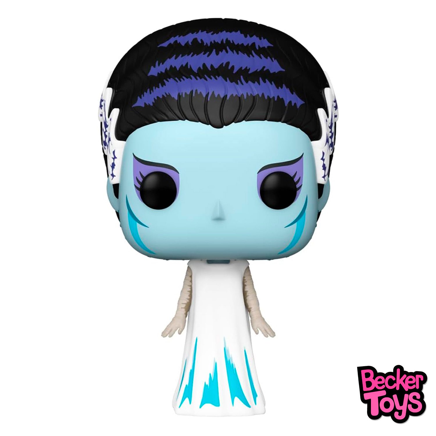 Funko Pop! Movies: Bride of Frankenstein es una figura de vinilo lanzada por Funko como parte de su línea de Universal Monsters. Esta figura mide aproximadamente 11,1 cm de altura y representa a la novia de Frankenstein, un personaje icónico del cine clásico de terror.