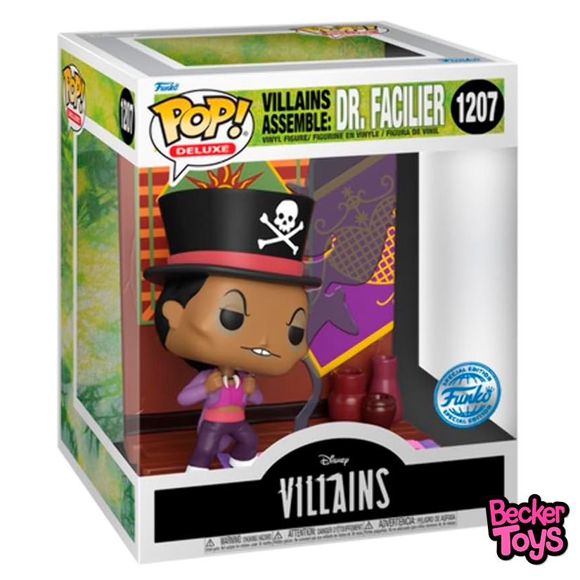 Funko Pop! Deluxe Disney Villains Assemble: Dr. Facilier 1207 en su caja original. Figura de colección de la línea Pop! Deluxe inspirada en Disney Villains, presentada con base decorada y fondo escénico.