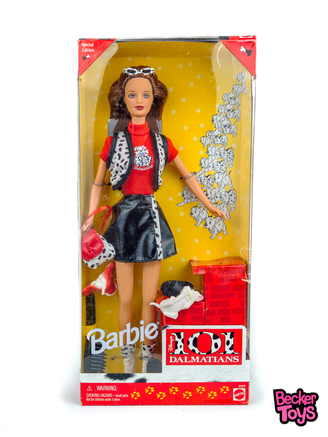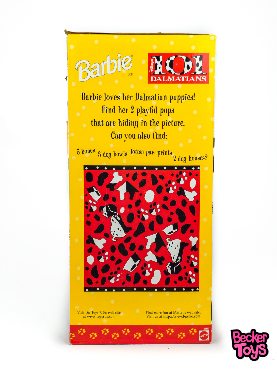 Barbie 101 Dalmatians Brunette de 1998 en su caja original. Esta Special Edition está inspirada en 101 Dalmatians de Disney, la conocida historia de los cachorros dálmata, y presenta una propuesta de moda temática con detalles que evocan el universo visual de la película.