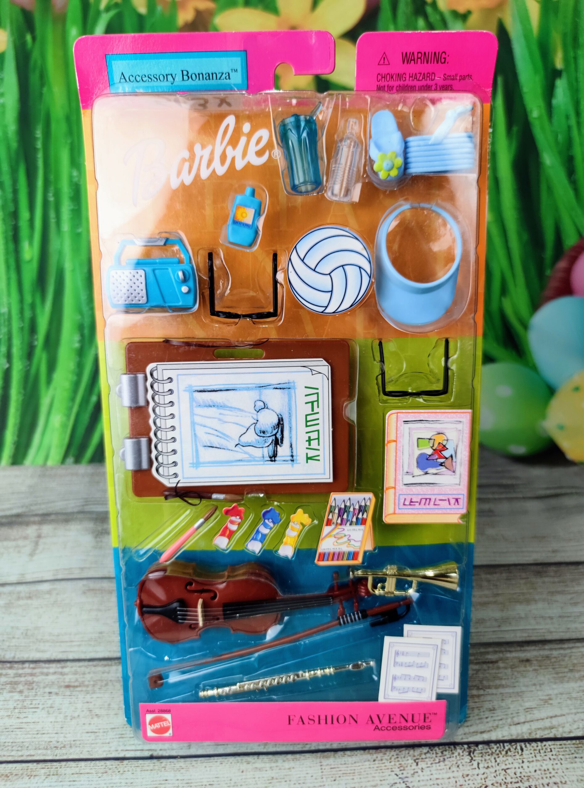 Barbie Accessory Bonanza 2001 es una emocionante línea de accesorios lanzada en 2001. A diferencia de las ediciones anteriores, esta colección ofrece más variedad y diversión en cada paquete. Cada conjunto temático viene con una selección de accesorios y piezas de arte de plástico y chip que permiten a las niñas explorar diferentes estilos de vida con su muñeca Barbie.