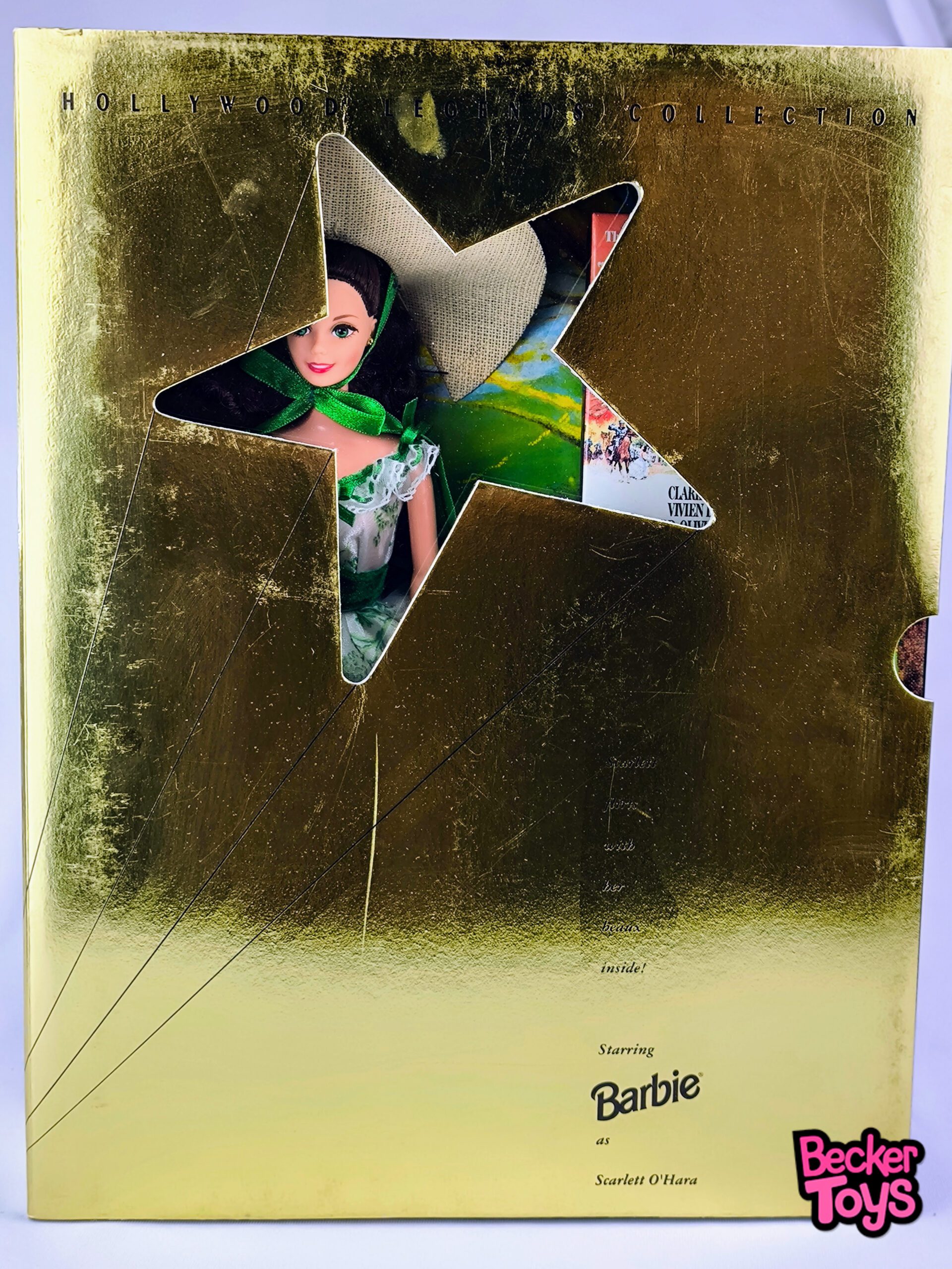 La Barbie As Scarlett O’Hara de 1994 es parte de la serie Hollywood Legends, inspirada en el personaje icónico de la película “Lo que el viento se llevó”. Esta muñeca captura la esencia de Scarlett O’Hara con un vestido verde y blanco, que es una réplica del famoso vestido hecho de cortinas que Scarlett usa en la película.
