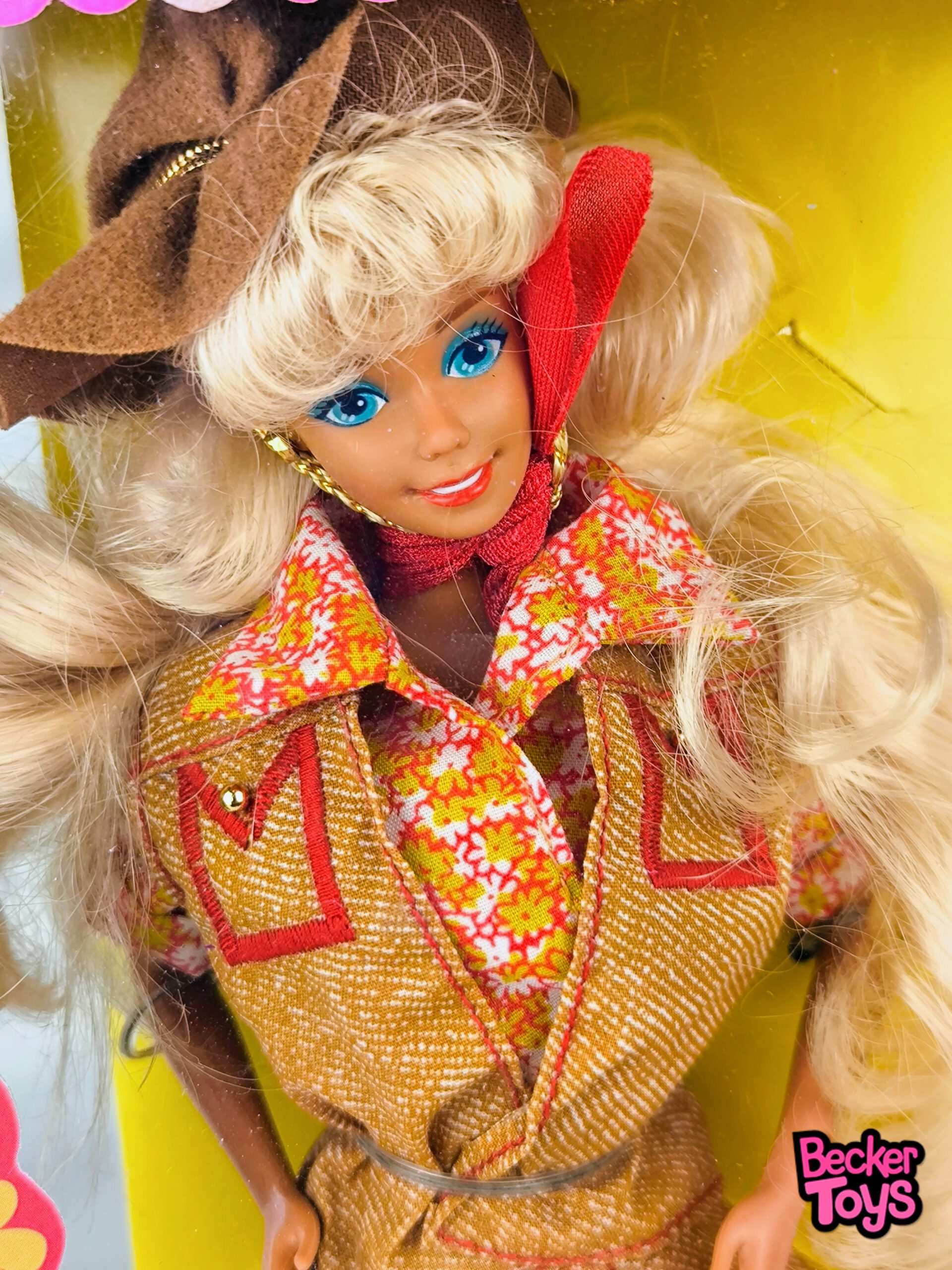 Barbie Australian de 1993, parte de la colección Dolls of the World de Mattel, celebra el espíritu aventurero y la vida en el outback australiano con un diseño auténtico y lleno de carácter. Identificada con el número de producto #03626, esta edición especial fue creada para representar a una jillaroo, es decir, una ranchera australiana.