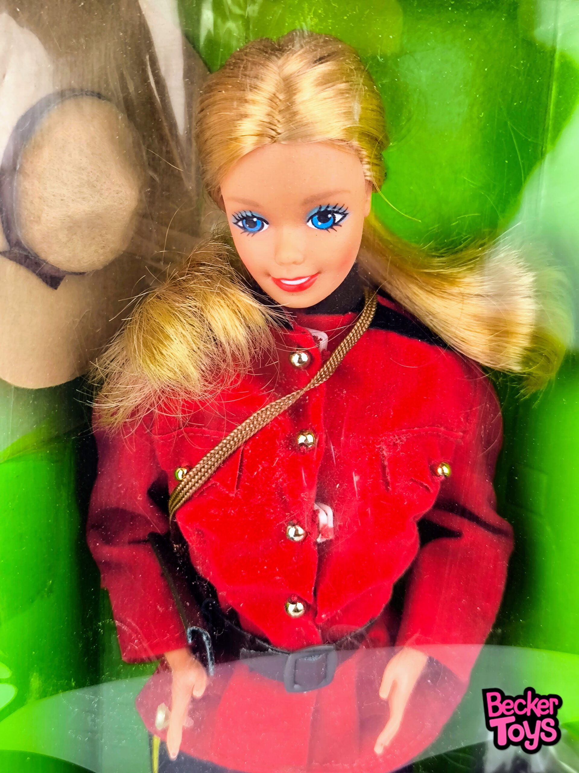 La Canadian Barbie fue lanzada en 1987 como parte de la serie Dolls of the World, una línea que comenzó en 1980 con el objetivo de representar diferentes culturas y países a través de la moda y el diseño. Esta edición está inspirada en el uniforme ceremonial de la Royal Canadian Mounted Police (RCMP), una figura icónica de la identidad canadiense.