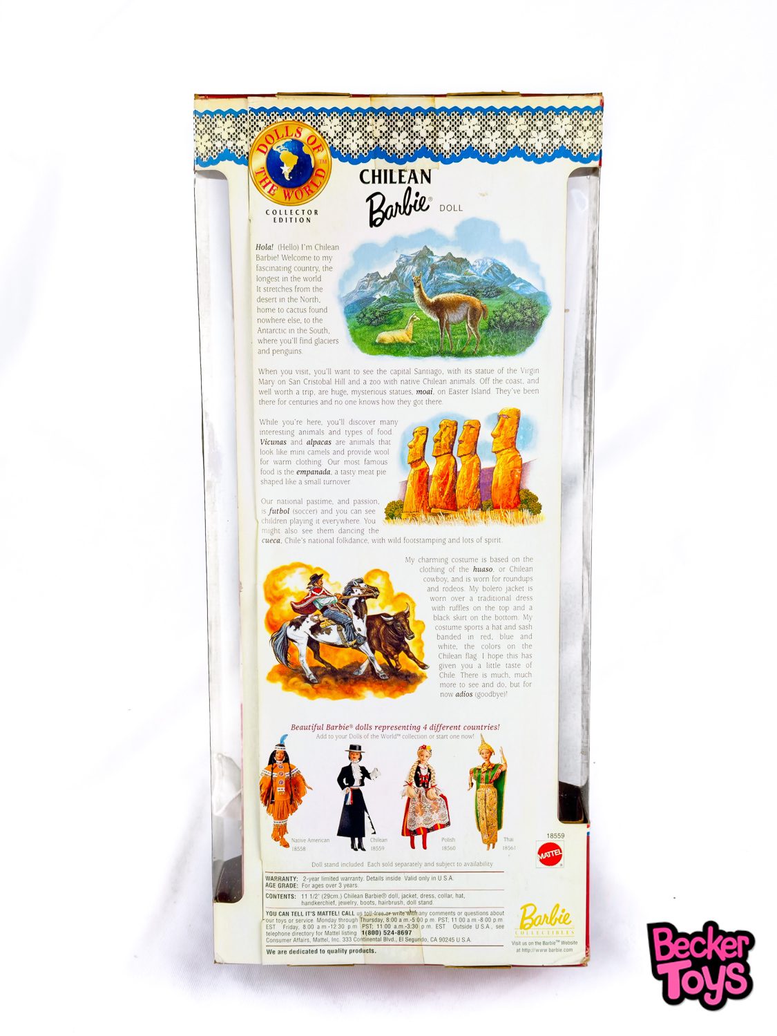 - Comprar en Becker Toys es más que adquirir una muñeca o juguete de colección: es vivir una experiencia de confianza, calidad y atención al detalle. Todos nuestros productos son 100% originales, y cada pedido se embala cuidadosamente con materiales protectores para que tu pedido llegue en perfecto estado, lista para brillar en tu colección.