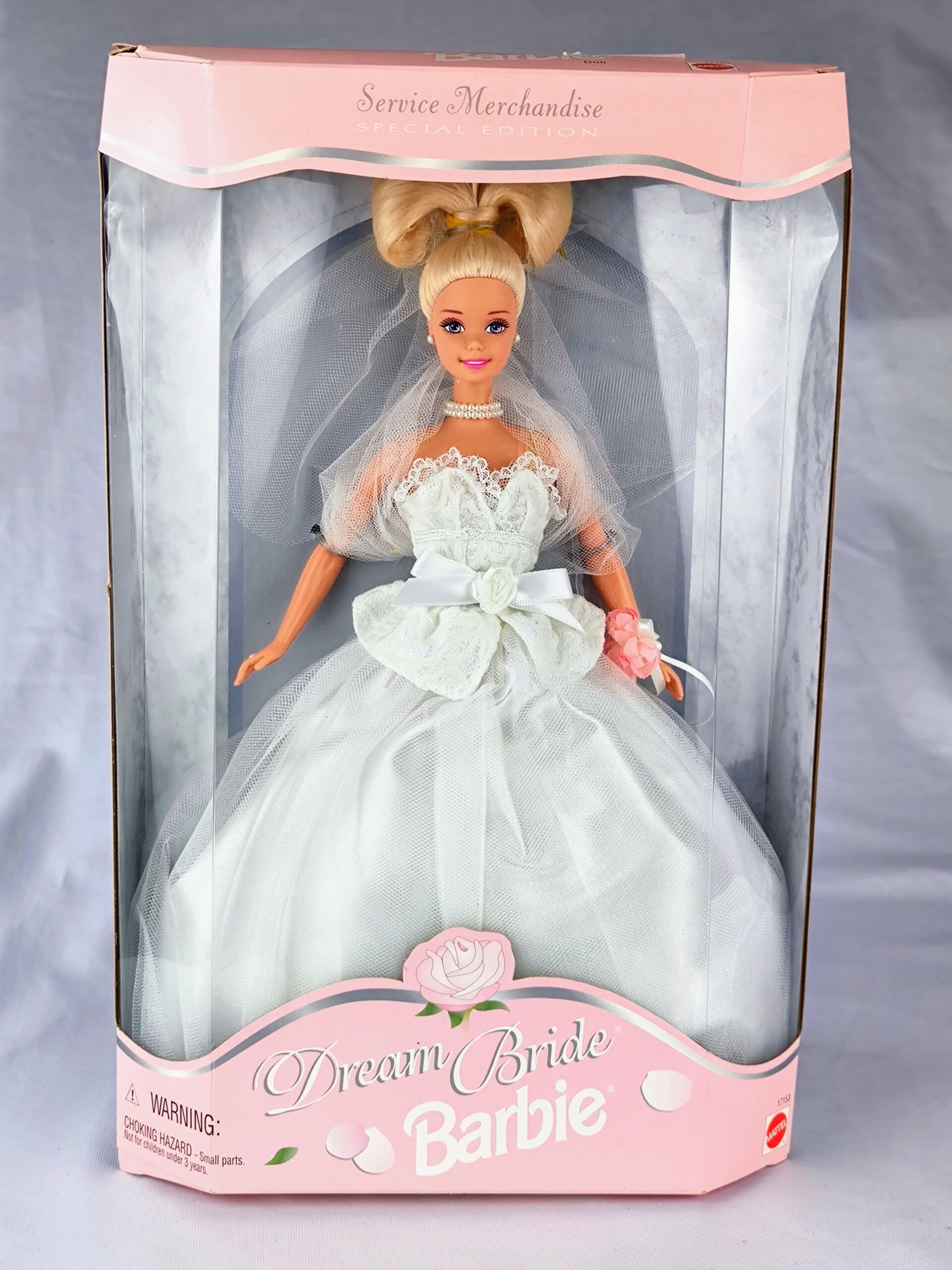 Barbie Dream Bride de 1996, lanzada por Mattel como una edición especial para la tienda Service Merchandise, es una muñeca que encarna el ideal clásico de una novia elegante y soñadora. Con el número de modelo #17153, esta Barbie forma parte de la línea Collector Edition y fue diseñada para capturar el romanticismo de una boda tradicional con un toque de fantasía.