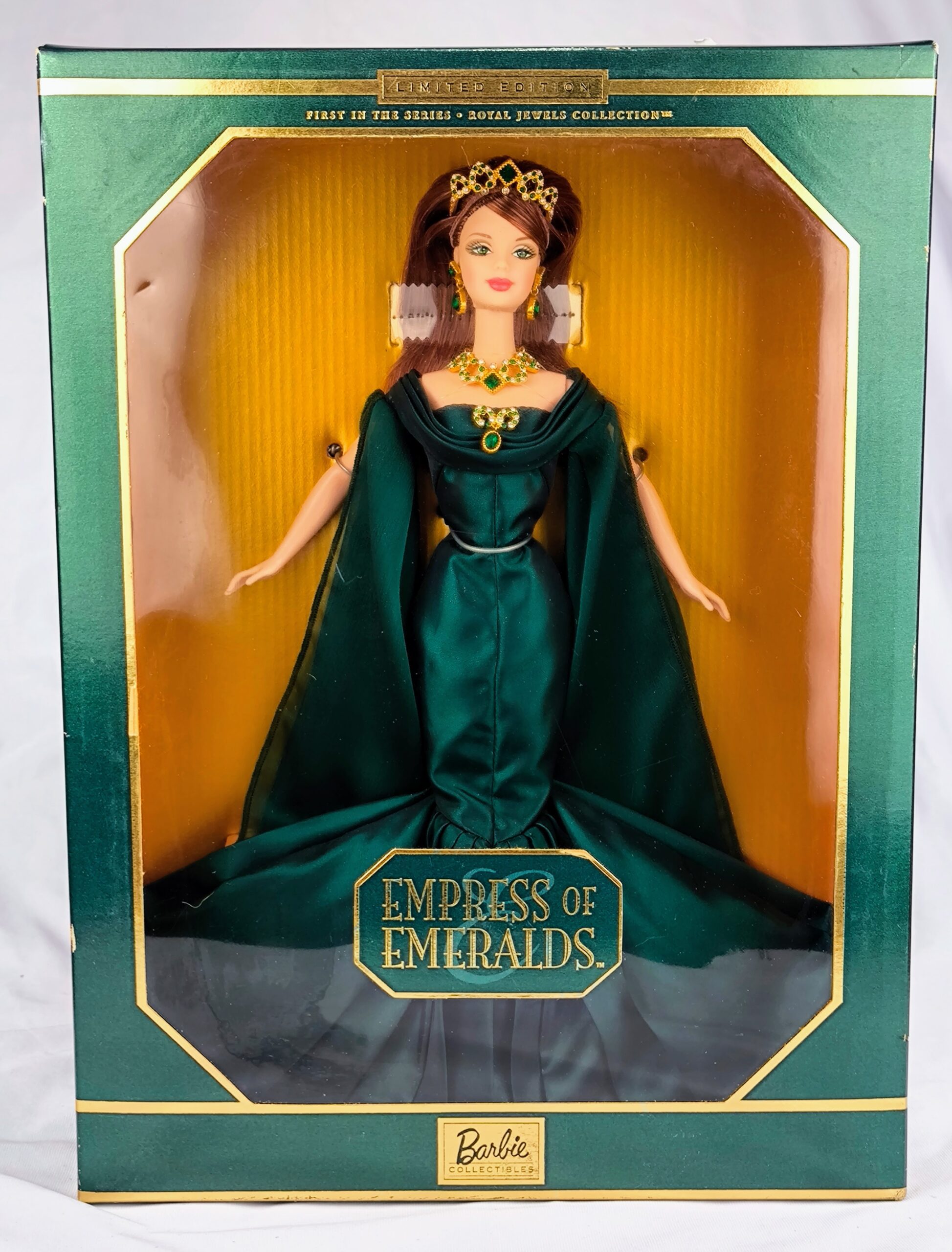 Muñeca de colección Royal Jewels Collection Barbie Empress of Emeralds de 1999. Nueva, nunca sacada de la caja. Caja dañada.