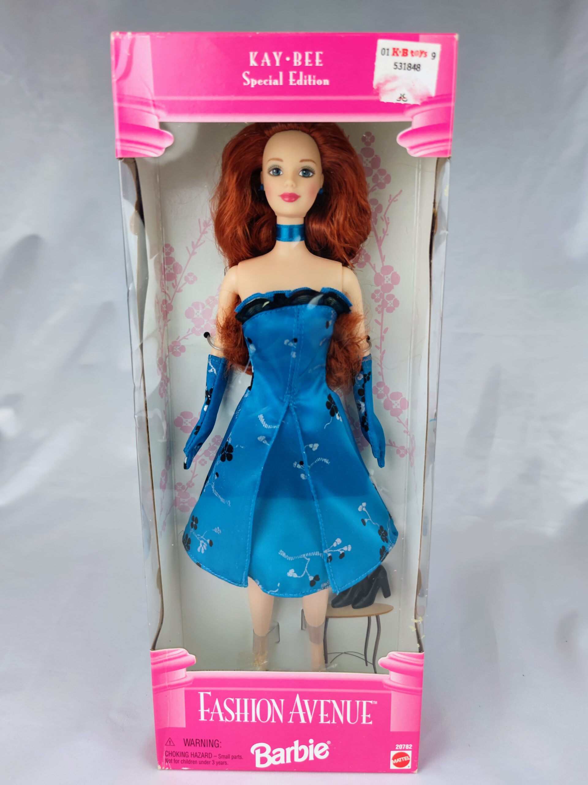 Barbie Fashion Avenue Kay-Bee 1998 es una edición especial de Barbie lanzada por Mattel en 1998 como una exclusiva de Kay-Bee Toys. Esta Barbie mide aproximadamente 30 centímetros y tiene el cabello rojo ondulado y ojos azules. Lleva un vestido