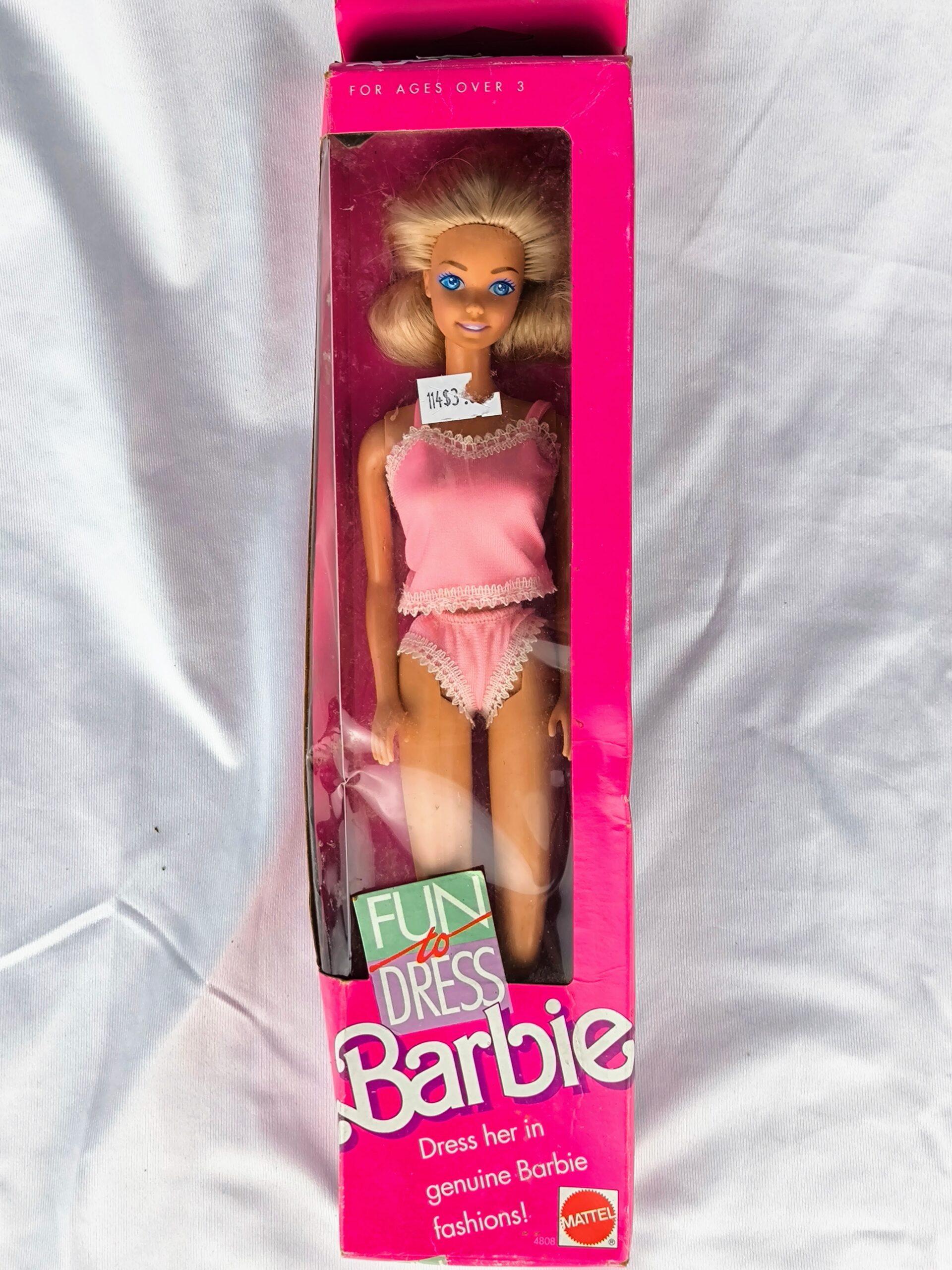 Muñeca de colección Vintage Barbie Fun To Dress de 1989. Nueva, nunca sacada de la caja. Caja dañada.