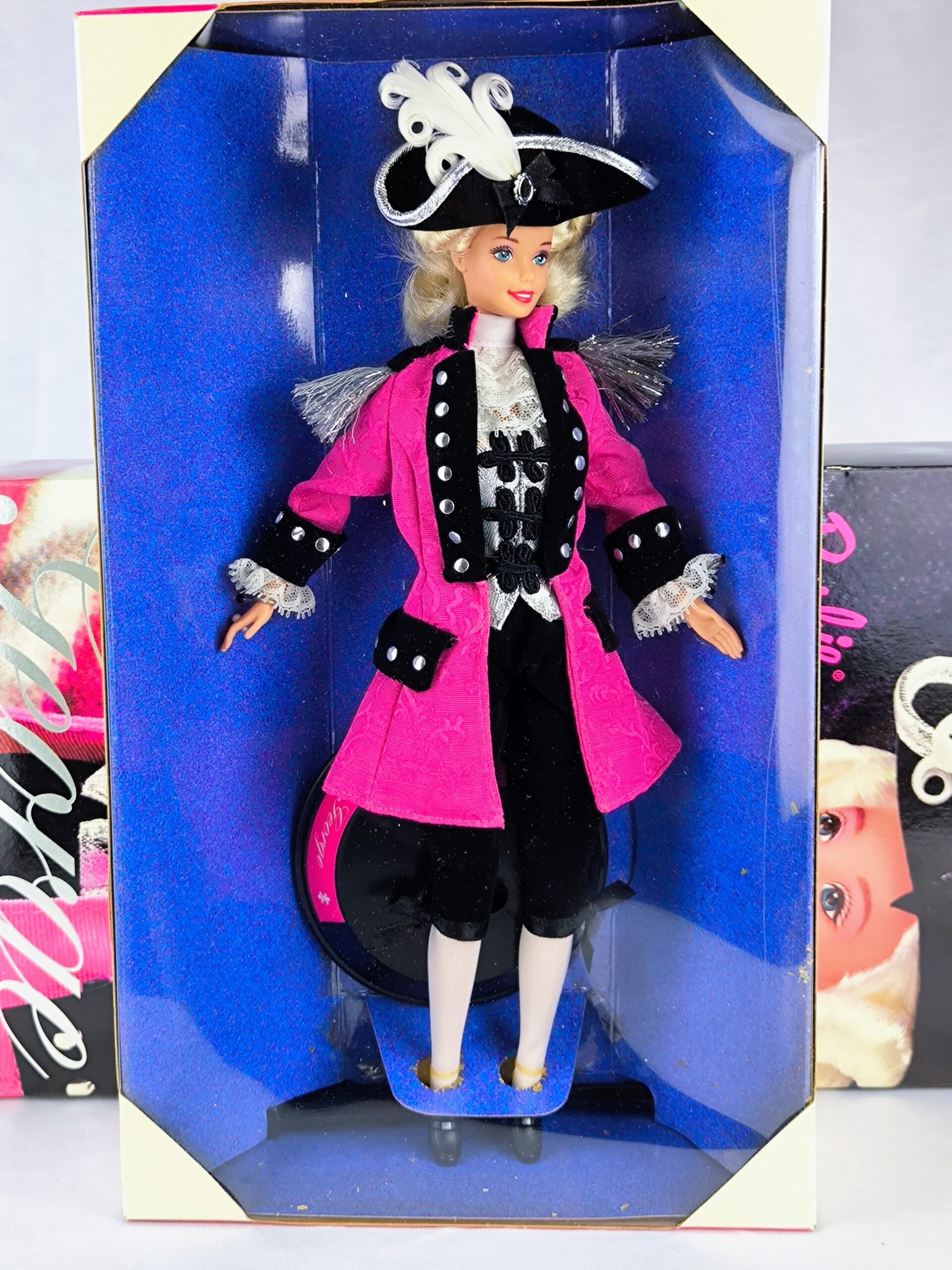 - Descripción: Esta Barbie rinde homenaje al padre fundador de los Estados Unidos, George Washington, como la segunda muñeca en la gloriosa Colección American Beauties de FAO Schwarz. El conjunto incluye: