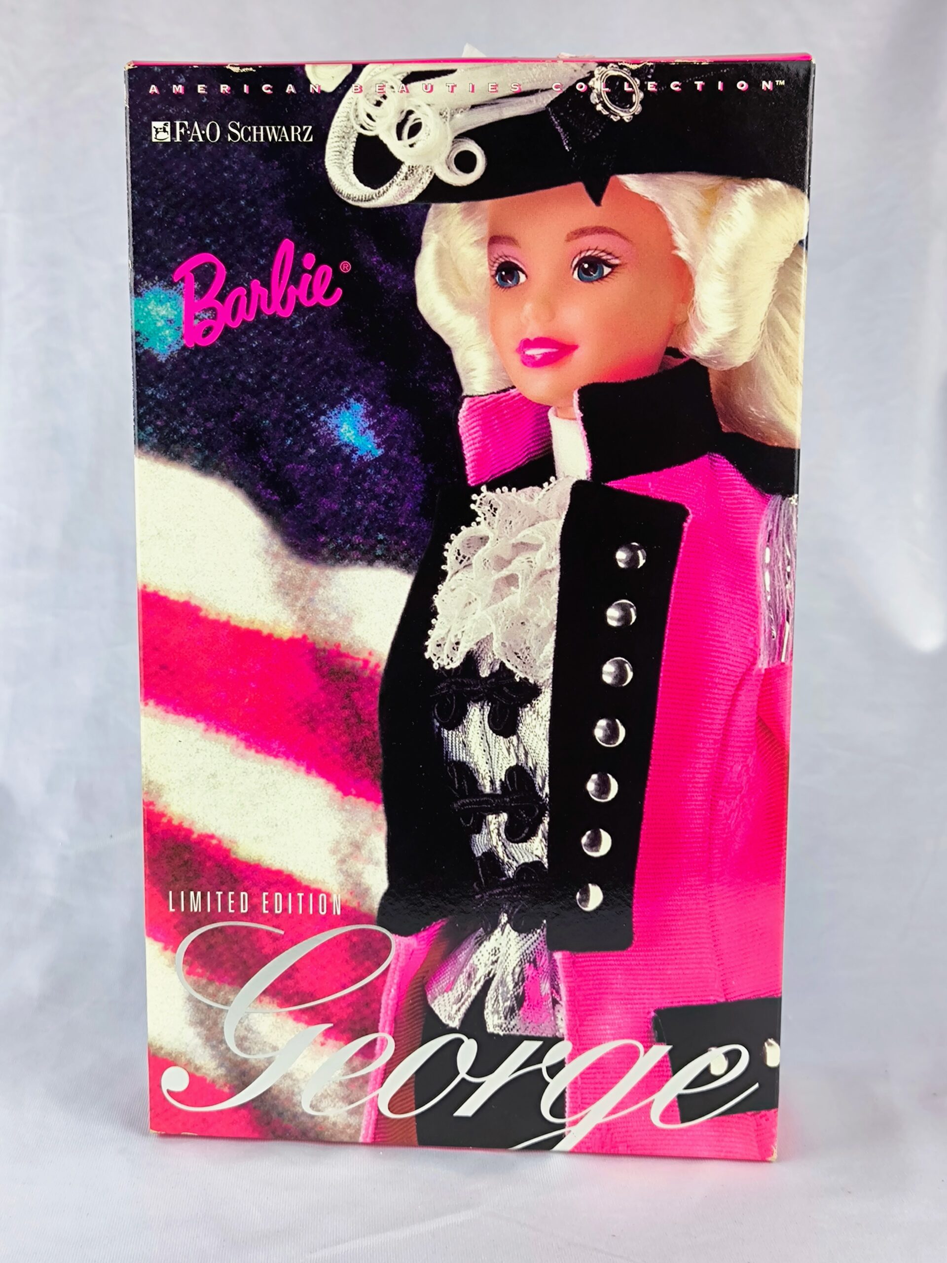 muñeca de colección American Beauties – Barbie George Washington de 1996. Exclusiva de FAO Schwarz. Nueva. Caja dañada.