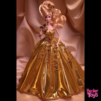 Barbie Gold Sensation (1993) – The Gold & Silver Porcelain Barbie Set – Limited Edition Gold Sensation es una de las muñecas de porcelana más lujosas y teatrales que Mattel lanzó en los años 90. Forma parte del set The Gold and Silver Porcelain Barbie Set, siendo la primera del conjunto, y destaca por su estética opulenta, su acabado artesanal y su presencia de auténtica “reina dorada”.
