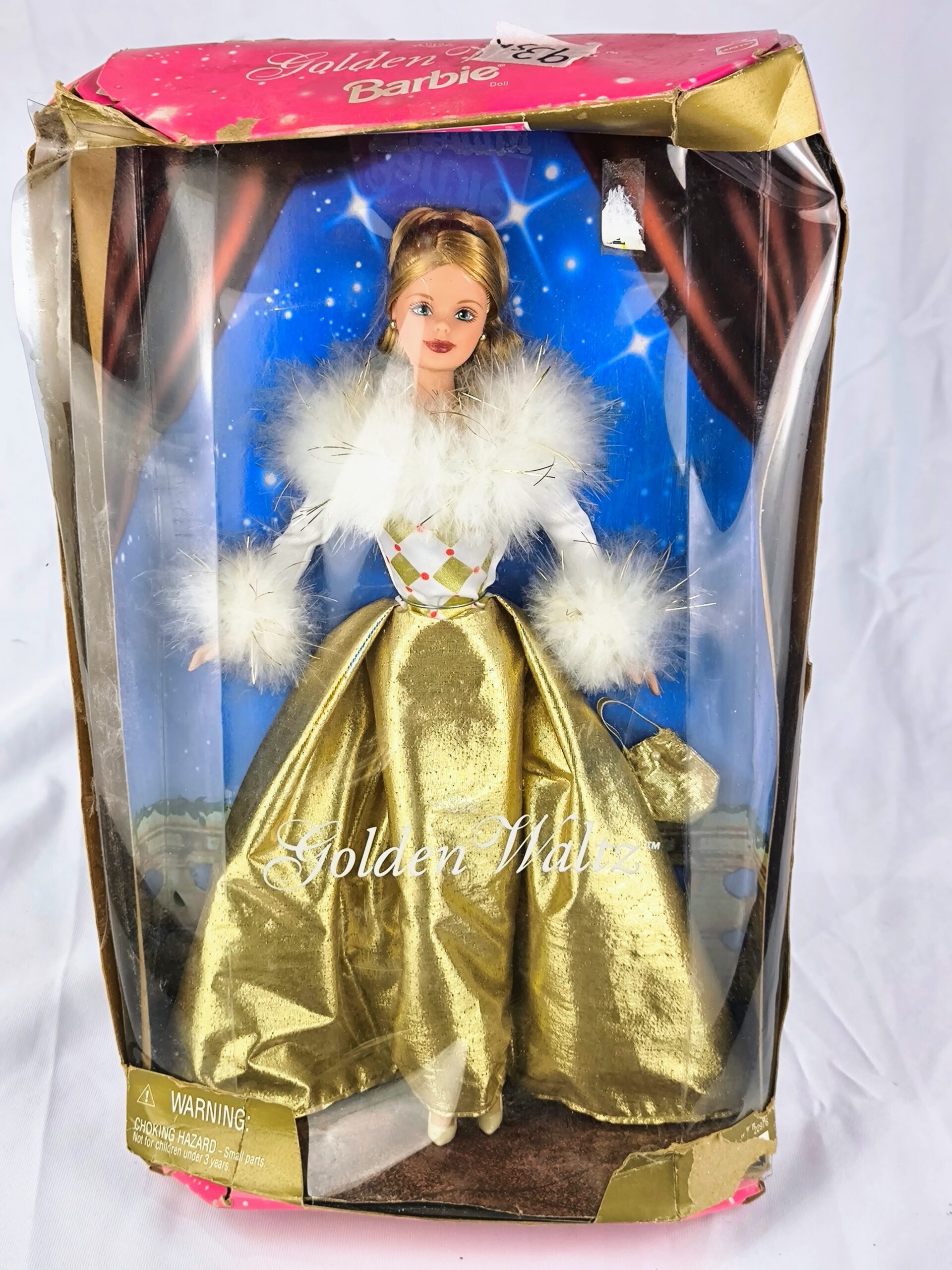 Muñeca de colección Barbie Golden Waltz de 1998. Nueva. Caja extremadamente dañada.