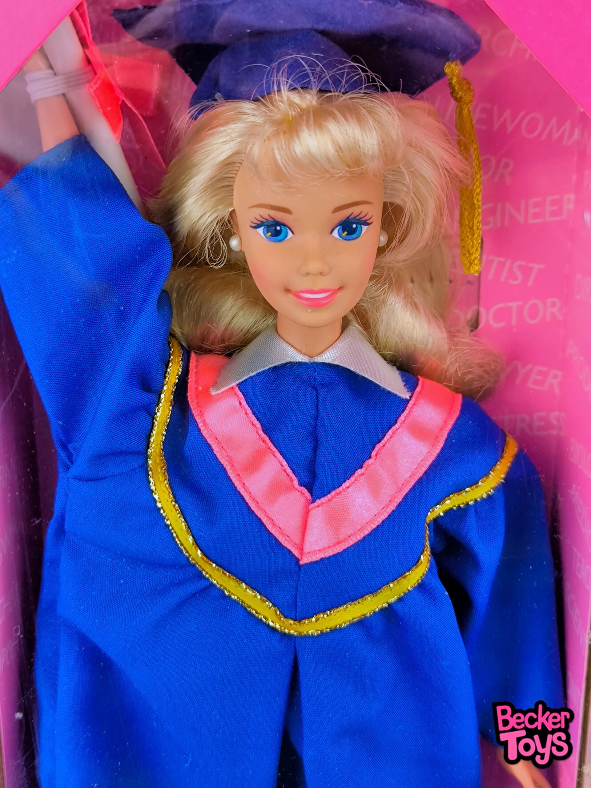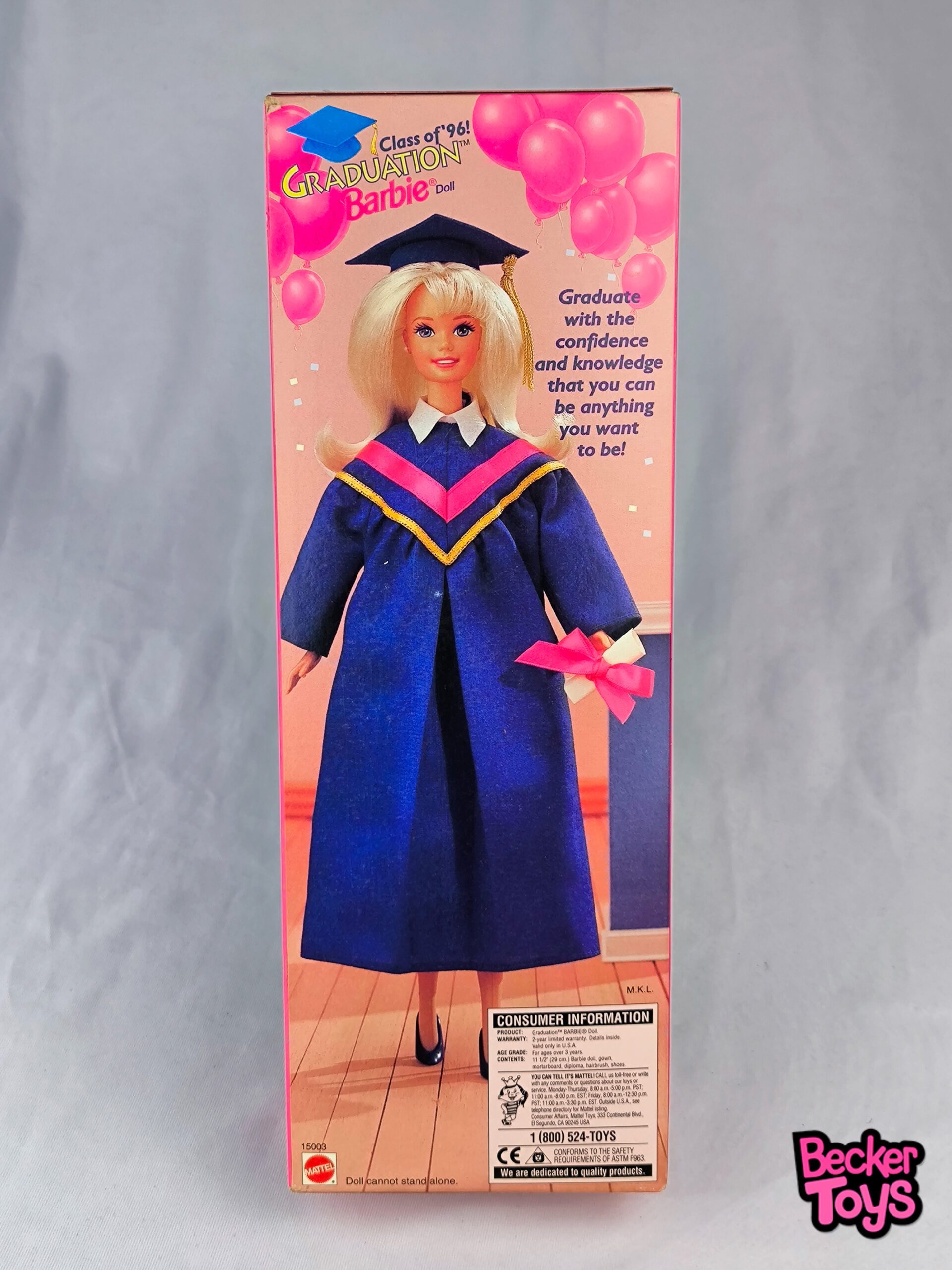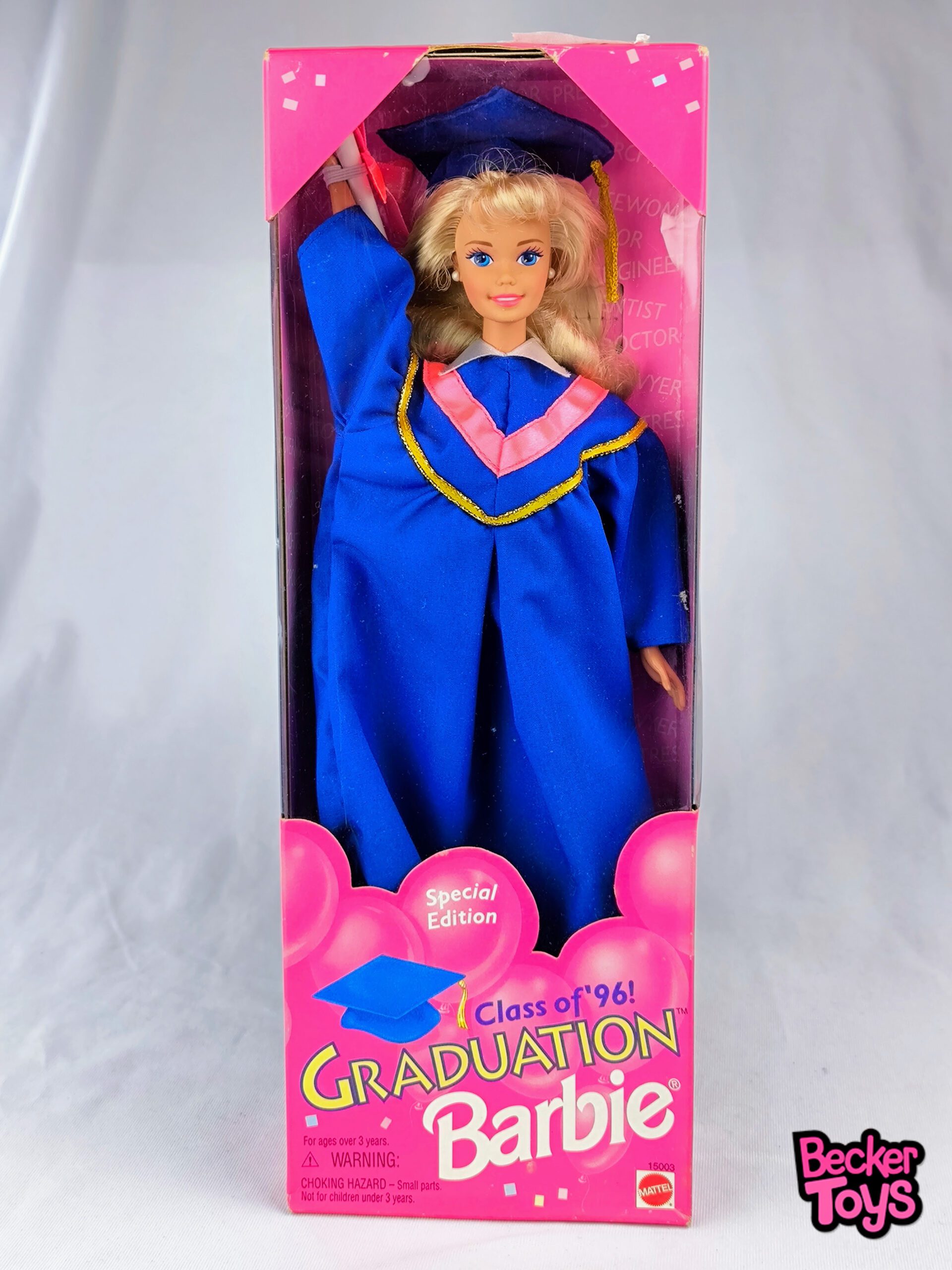 La Barbie Graduation Class of ’96 es una edición especial fabricada en 1995 para celebrar la graduación. Esta muñeca viene vestida con una toga azul y un birrete a juego. Además, lleva un diploma en la mano, simbolizando su logro académico.