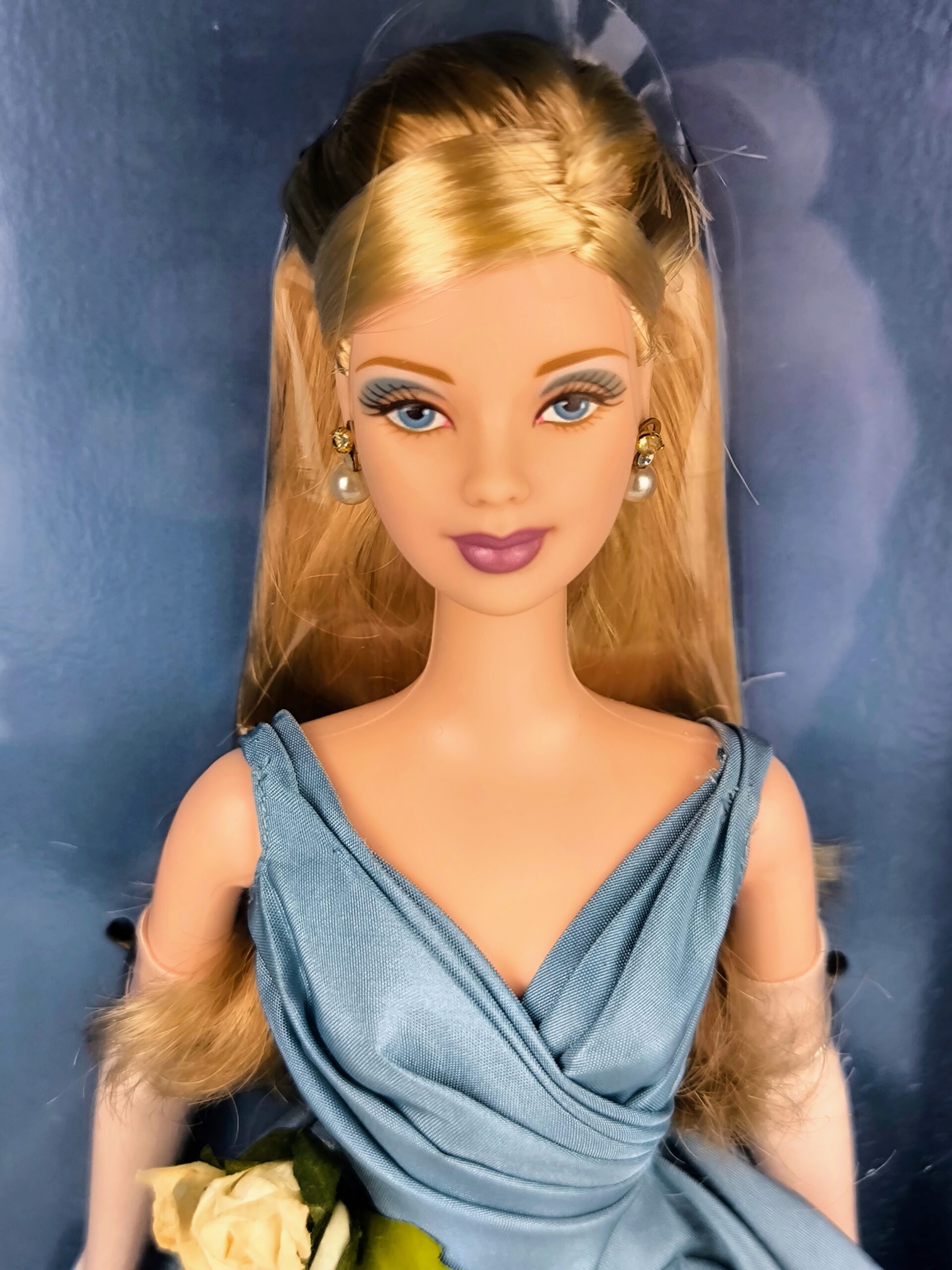 Además, la muñeca lleva guantes largos, joyería refinada y un peinado clásico que complementa su estilo majestuoso. Es parte de la serie «Grand Entrance», que celebra momentos inolvidables de alta costura.
