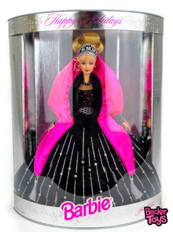 En resumen, la Barbie Happy Holidays 1998 es una pieza especial que combina la elegancia festiva con un toque único al vestir de negro. ¡Una adición encantadora a cualquier colección de Barbie