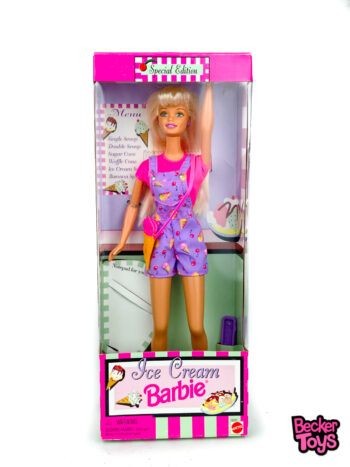 La Barbie Ice Cream de 1997 es una edición especial de Mattel que captura la dulzura y el encanto de un día de verano. Esta Barbie viene con un vestido temático de helado que refleja la alegría y la diversión de la temporada. Con su cabello rubio liso y ojos azul-verdosos, esta muñeca irradia belleza y elegancia, siendo una adición imprescindible para cualquier coleccionista o entusiasta de Barbie.