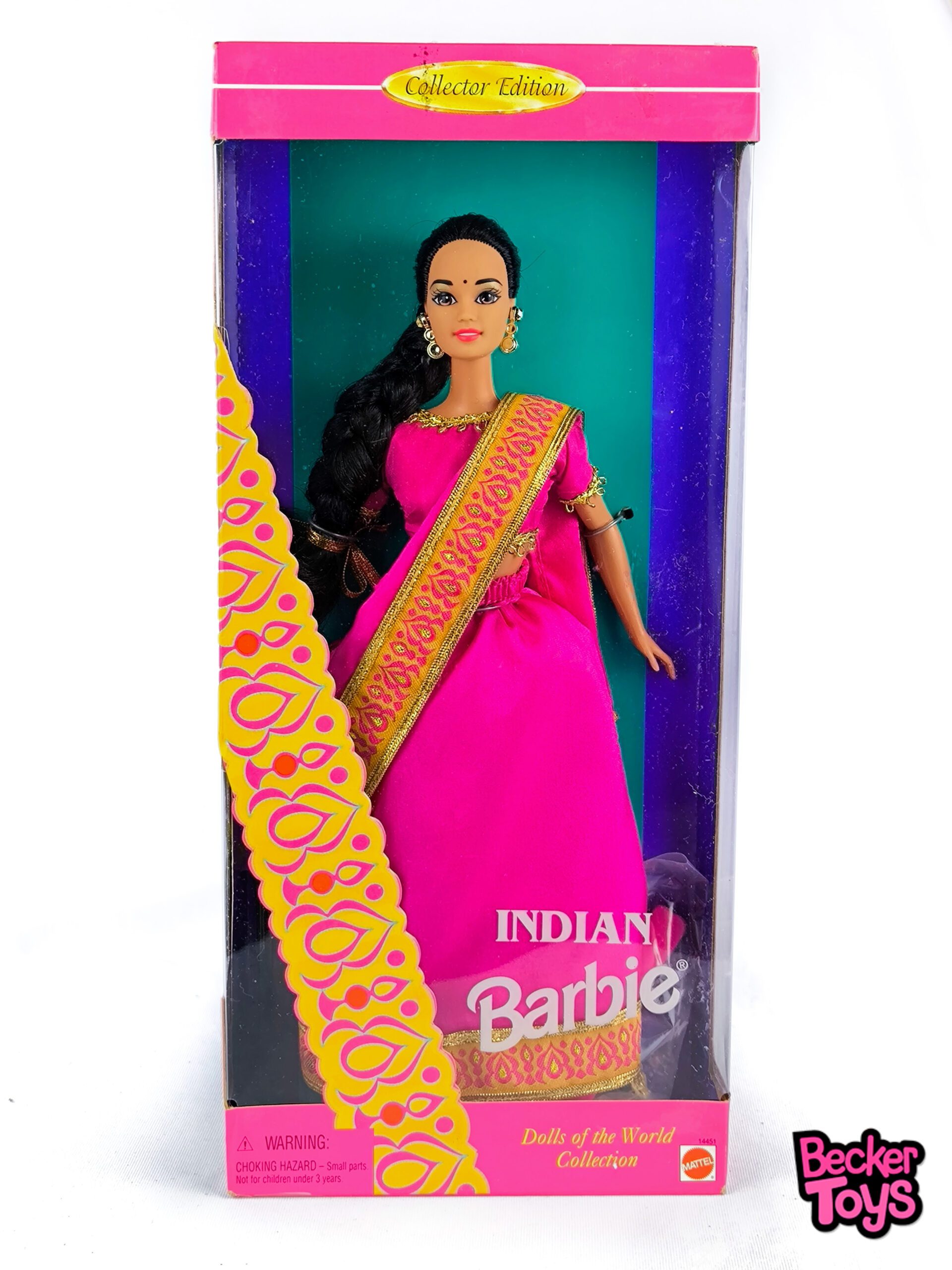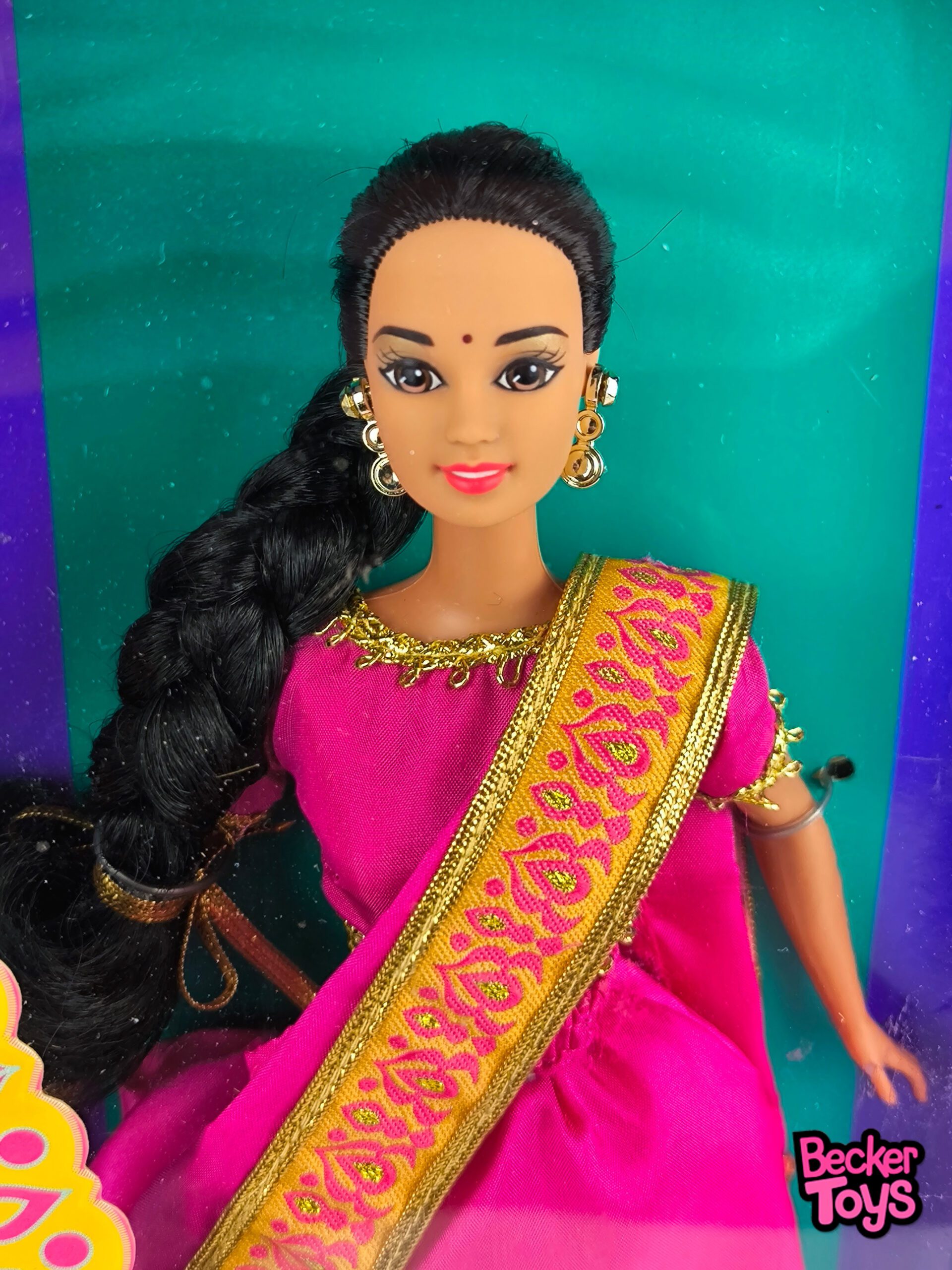 Barbie Indian de 1995 de la colección «Dolls of the World» es una edición de coleccionista. Esta Barbie lleva un sari tradicional indio de color rosa con detalles dorados. Su atuendo está complementado con accesorios típicos y su cabello oscuro está adornado con un bindi en la frente.