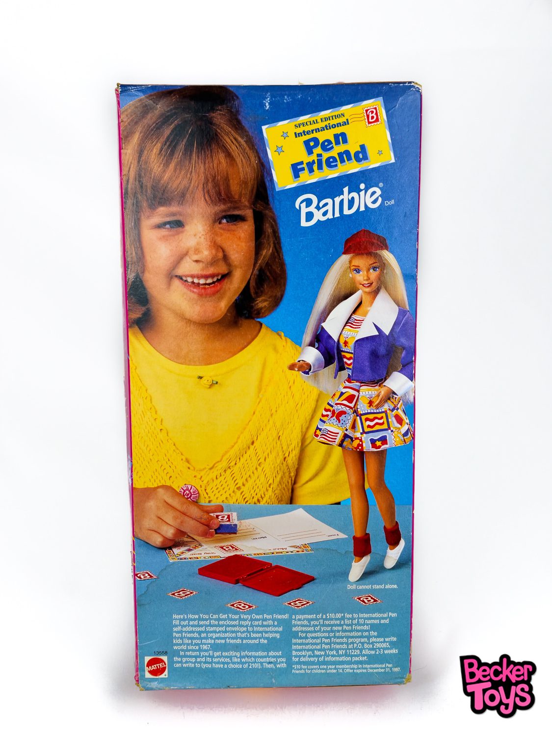 muñeca de colección Barbie International Pen Friend de 1995. Nueva. Nunca sacada de la caja. Caja muy dañada.