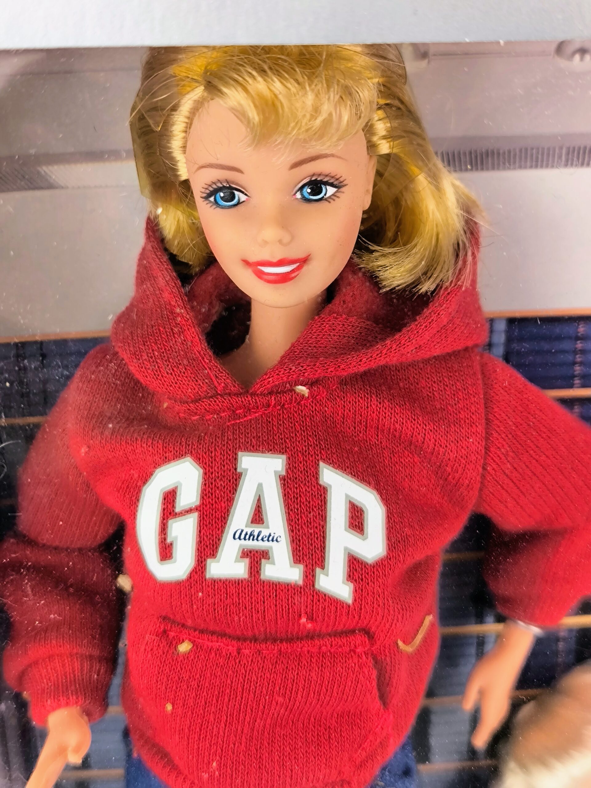 Barbie & Kelly GAP de 1997 es un encantador set de edición especial lanzado por Mattel que celebra la moda casual y urbana de los años 90 en colaboración con la icónica marca estadounidense GAP. Este set incluye dos muñecas: Barbie, de aproximadamente 11.5 pulgadas, y Kelly, su hermana menor, de unos 4.5 pulgadas, ambas vestidas con atuendos auténticos de GAP que reflejan el estilo relajado y juvenil de la época.