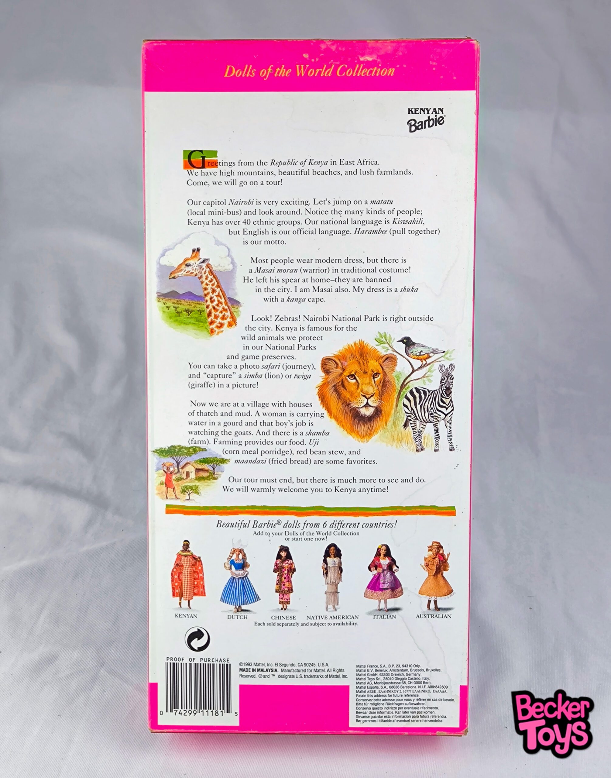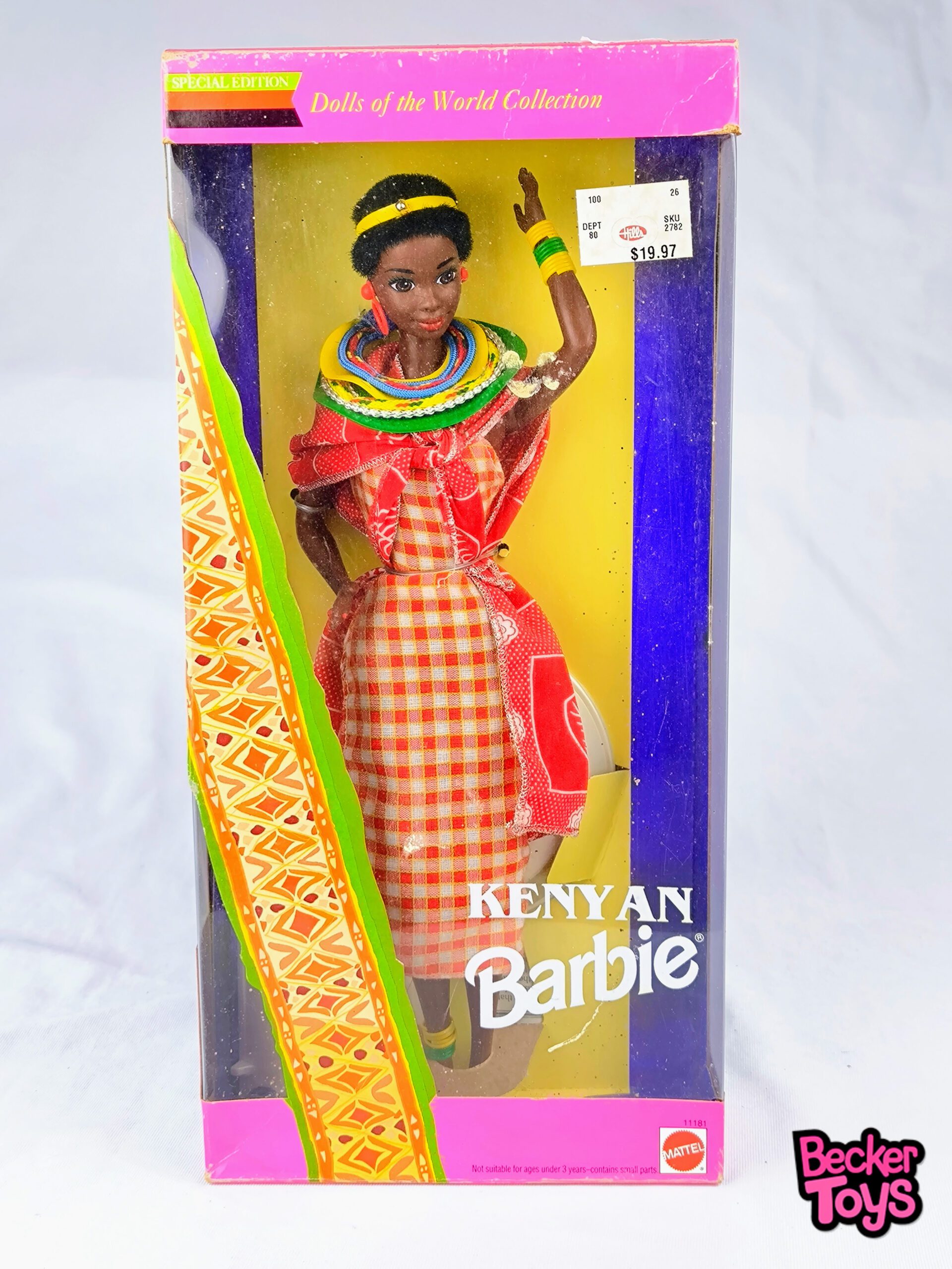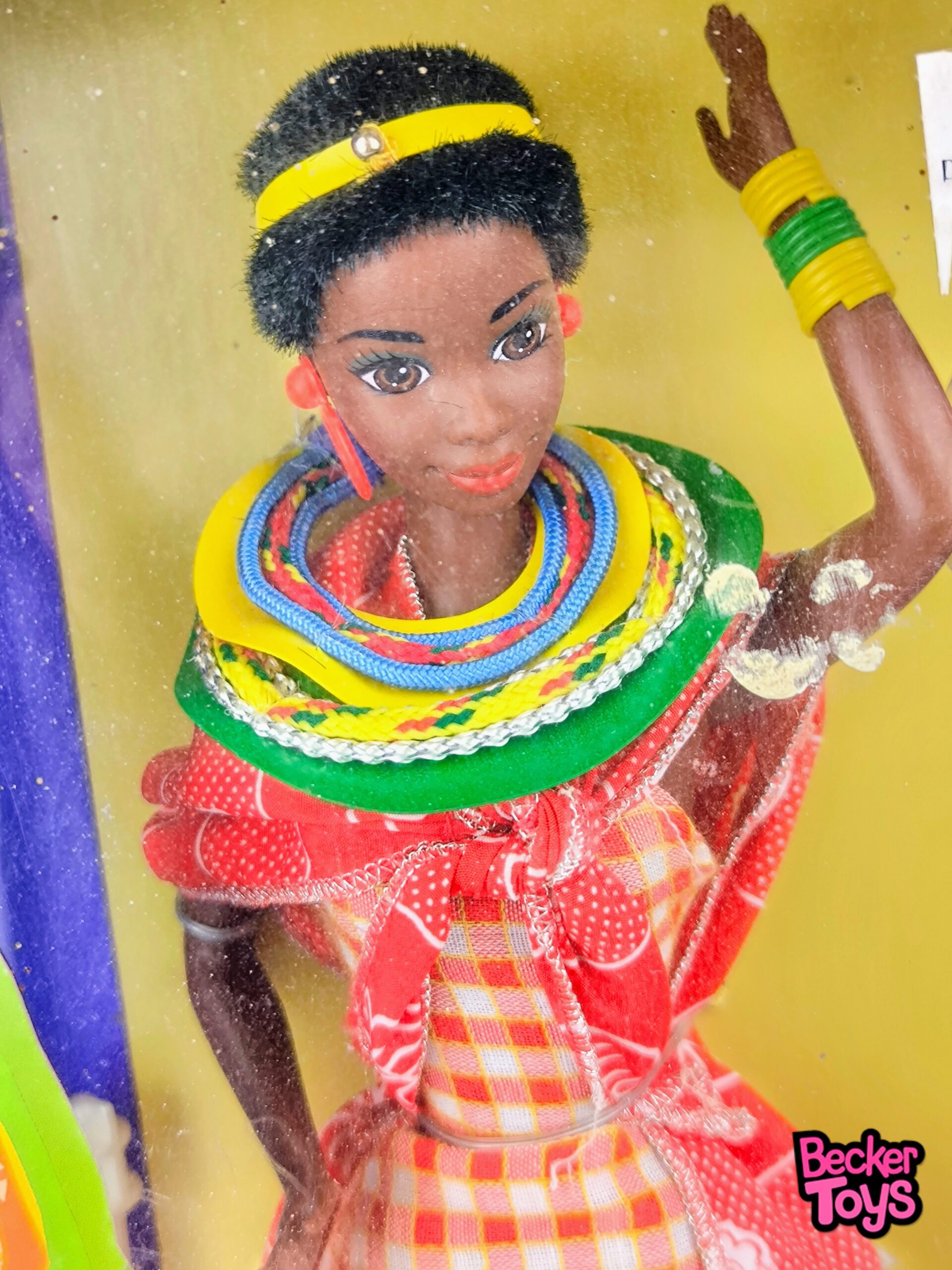 Muñeca de colección Dolls of the World – Barbie Kenyan (Kenia) de 1993. Nueva. Caja dañada con manchas de humedad.