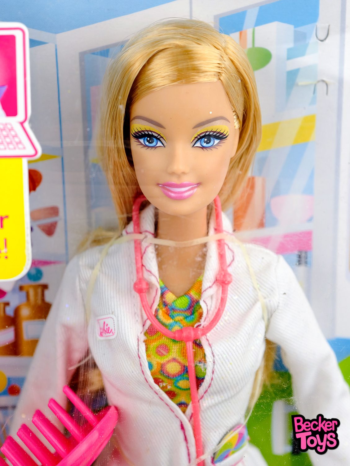 🩺 Barbie I Can Be… Kid Doctor (2009) – Mattel / Career Exploration Series Esta edición de 2009 forma parte de la línea I Can Be…, creada para inspirar a niñas y niños a imaginarse en distintas profesiones. Kid Doctor Barbie representa a una pediatra, con un enfoque amable, educativo y lleno de color.