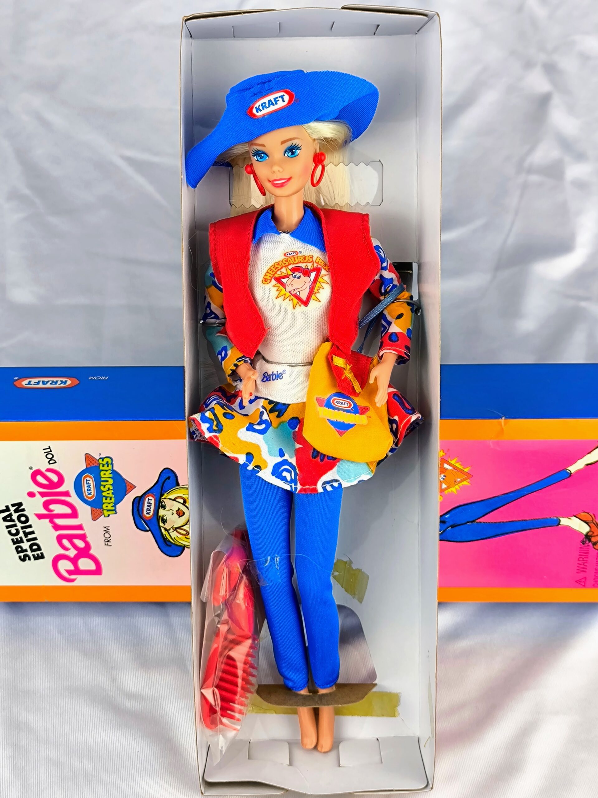Barbie Kraft Treasures de 1992 es una muñeca de colección lanzada en colaboración entre Mattel y Kraft. Se obtuvo exclusivamente a través del programa de puntos de Kraft, lo que la convierte en una pieza poco común y codiciada por los coleccionistas.