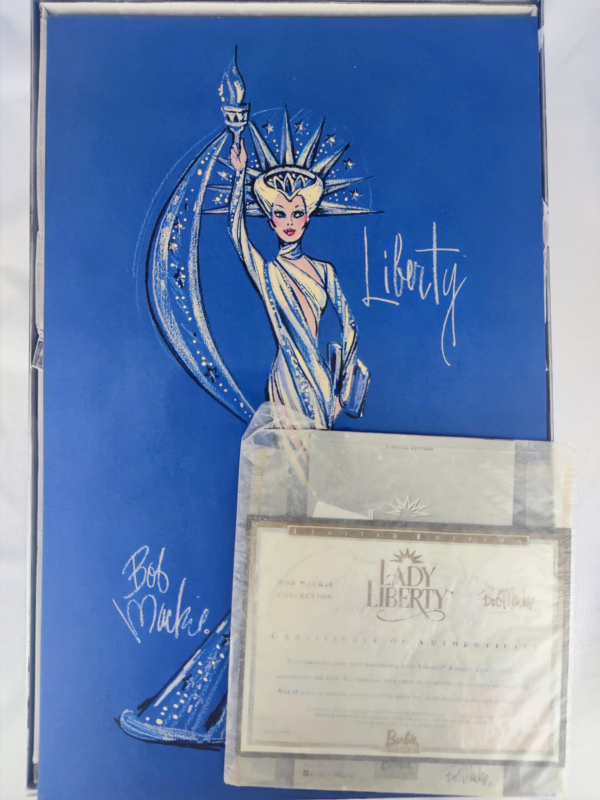 Muñeca Barbie Lady Liberty Bob Mackie del 2000. Nueva. Caja en buen estado, puede mostrar marcas del paso del tiempo.