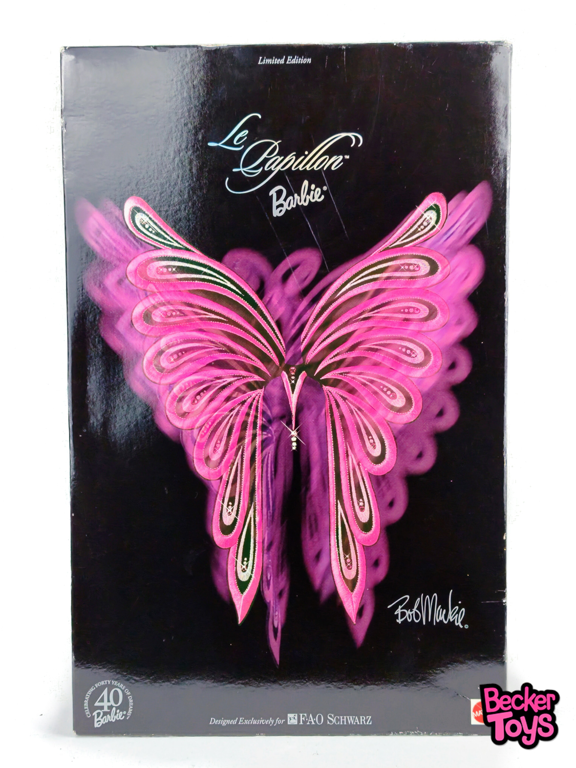 La Barbie Le Papillon de 1999, diseñada por el legendario modista Bob Mackie, es una deslumbrante edición limitada creada en celebración del 40º aniversario de Barbie. Exclusiva de FAO Schwarz, esta muñeca es una auténtica obra de arte que encarna la fantasía y el esplendor de una mariposa en pleno vuelo.