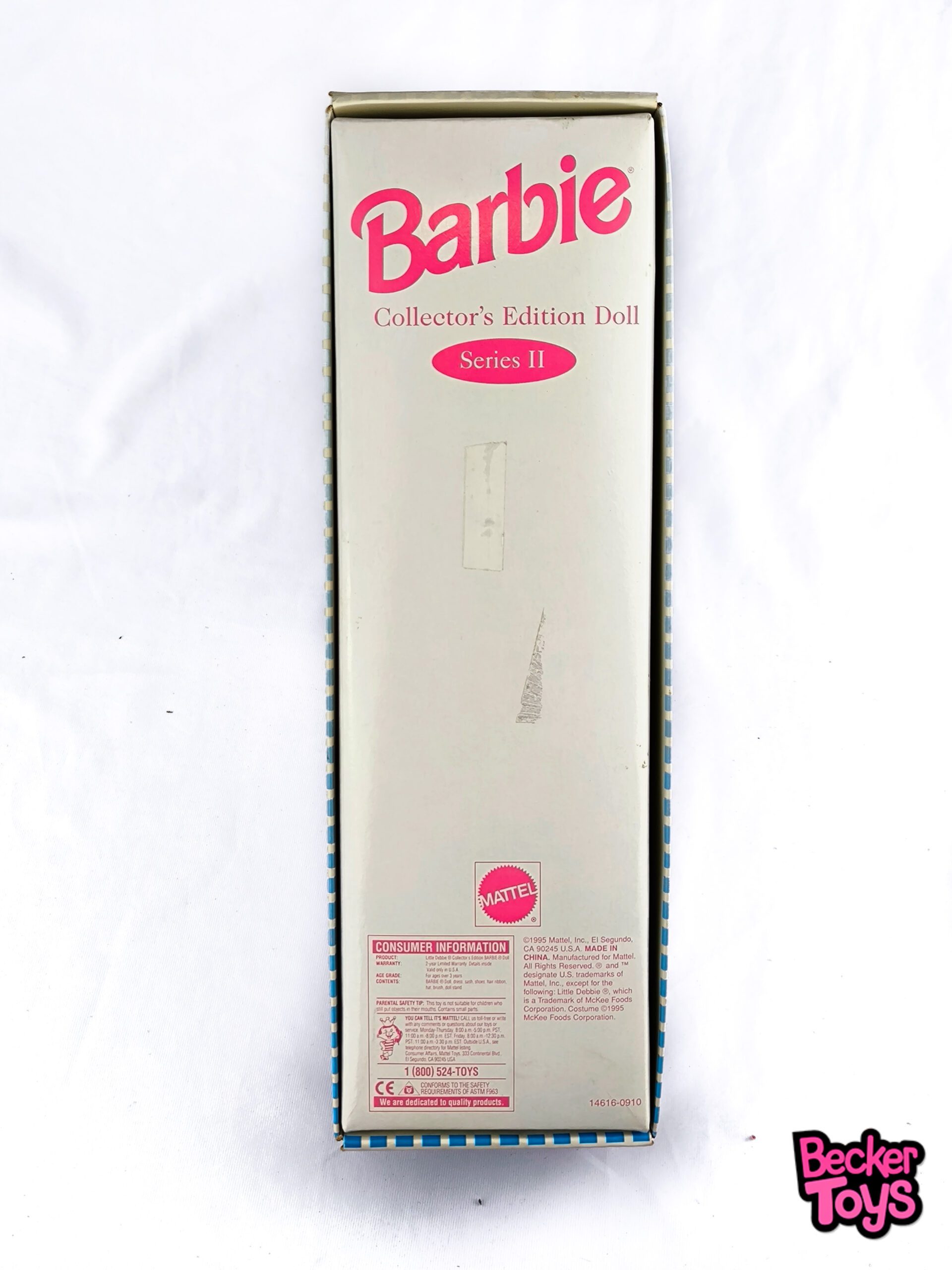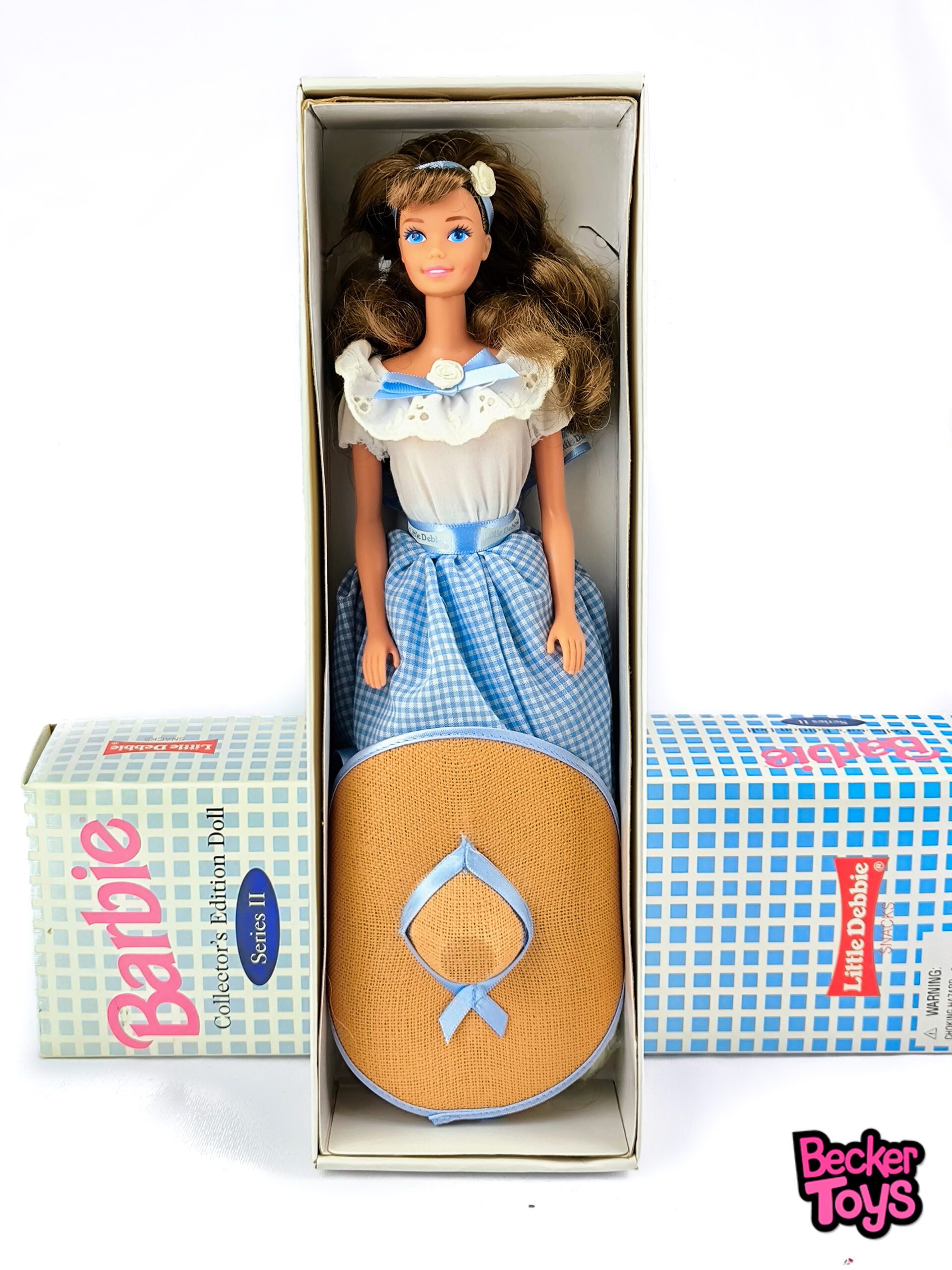 La Barbie Little Debbie Series II de 1995 es una muñeca de edición coleccionista que rinde homenaje a la icónica marca de aperitivos Little Debbie. Aquí tienes una descripción detallada del producto:
