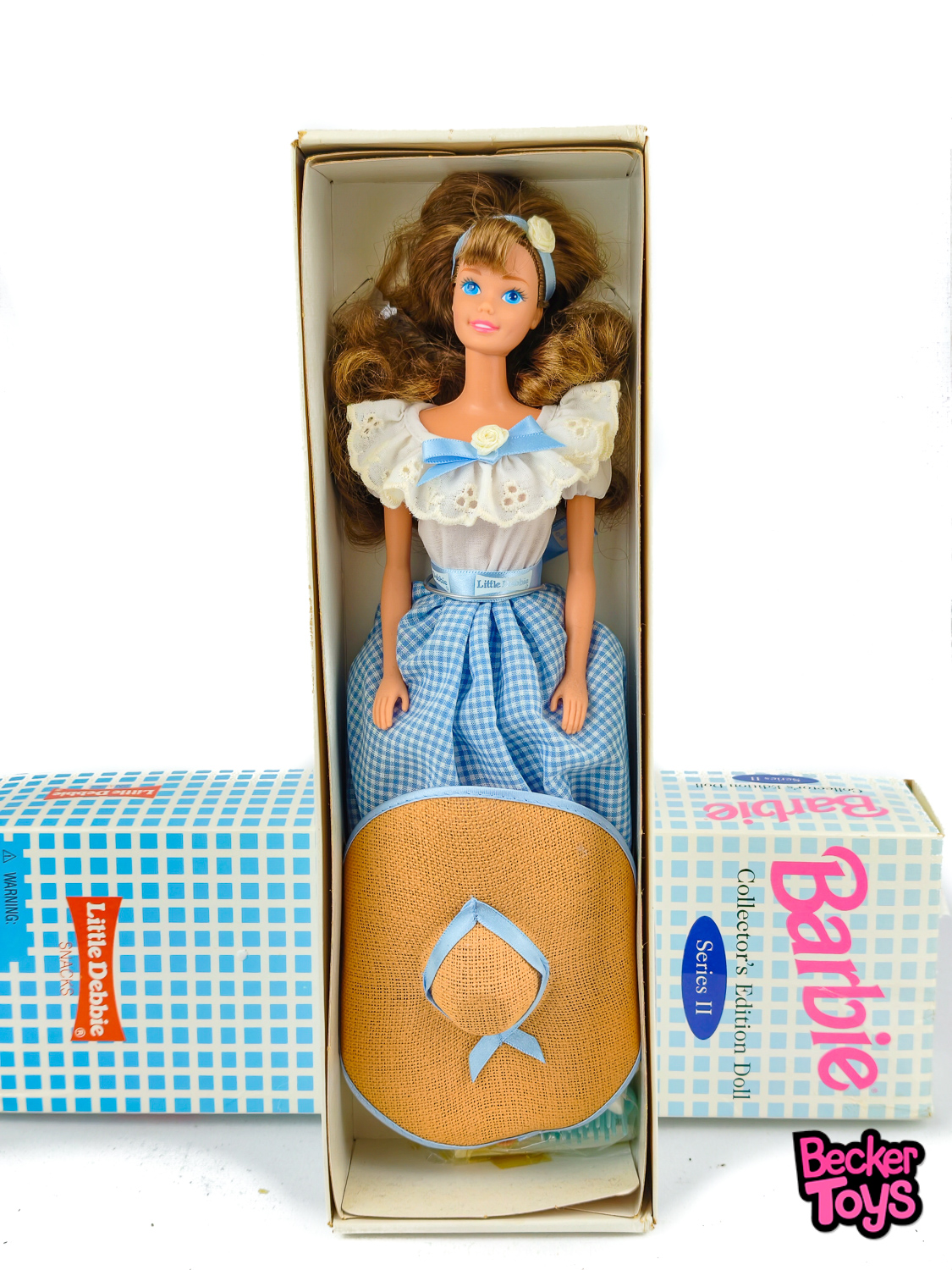 La Barbie Little Debbie Series II de 1995 es una muñeca de edición coleccionista que rinde homenaje a la icónica marca de aperitivos Little Debbie. Aquí tienes una descripción detallada del producto: