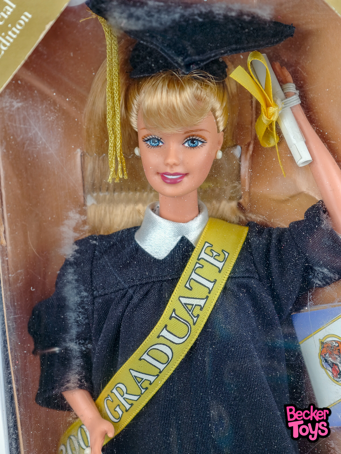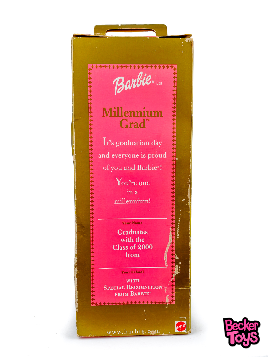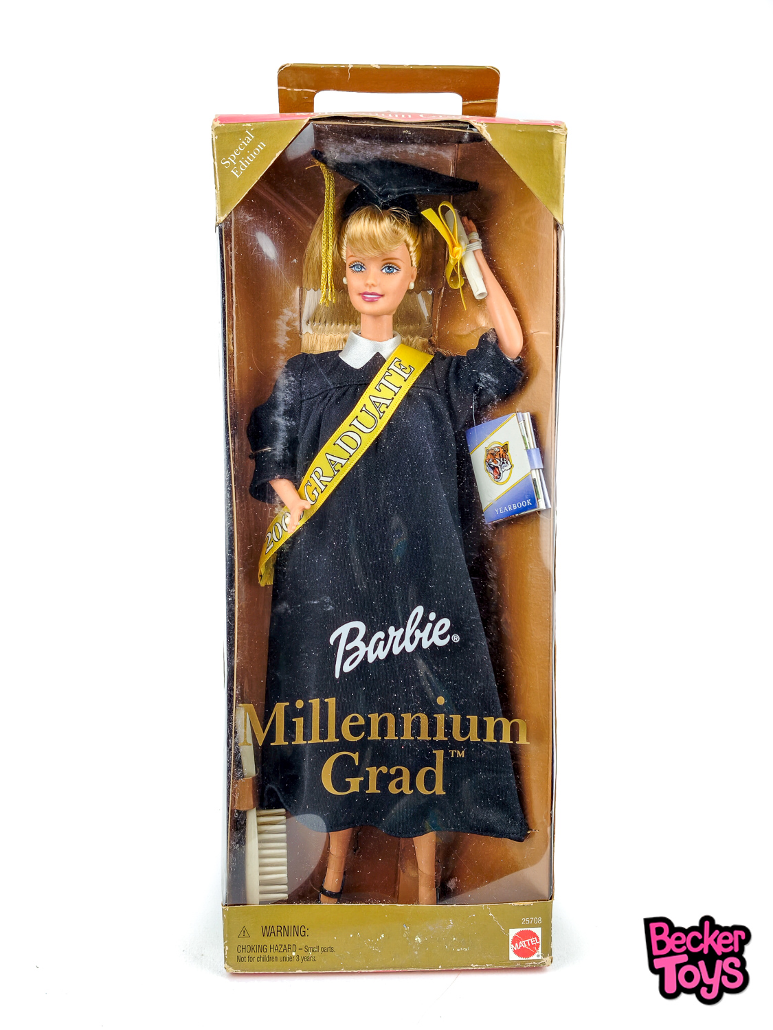 La Barbie Millennium Grad 2000 es una muñeca que celebra un hito importante: la graduación en el cambio de milenio. Esta Barbie está vestida para la ocasión con una toga de graduación negra y un birrete que contrastan elegantemente con los detalles dorados.