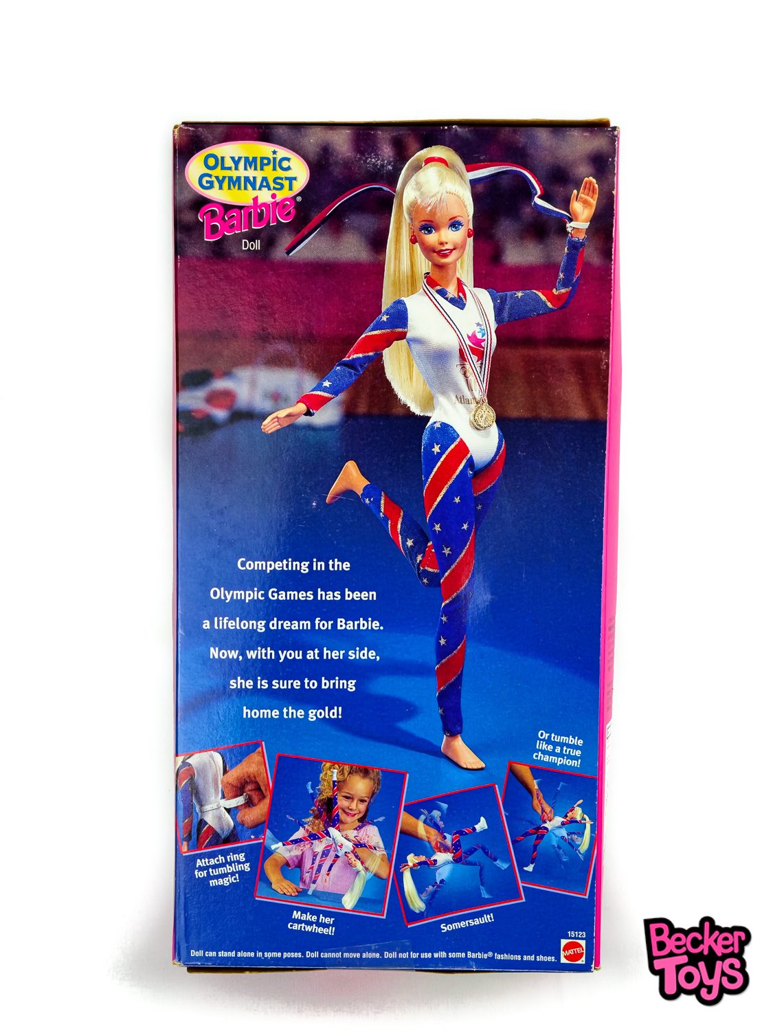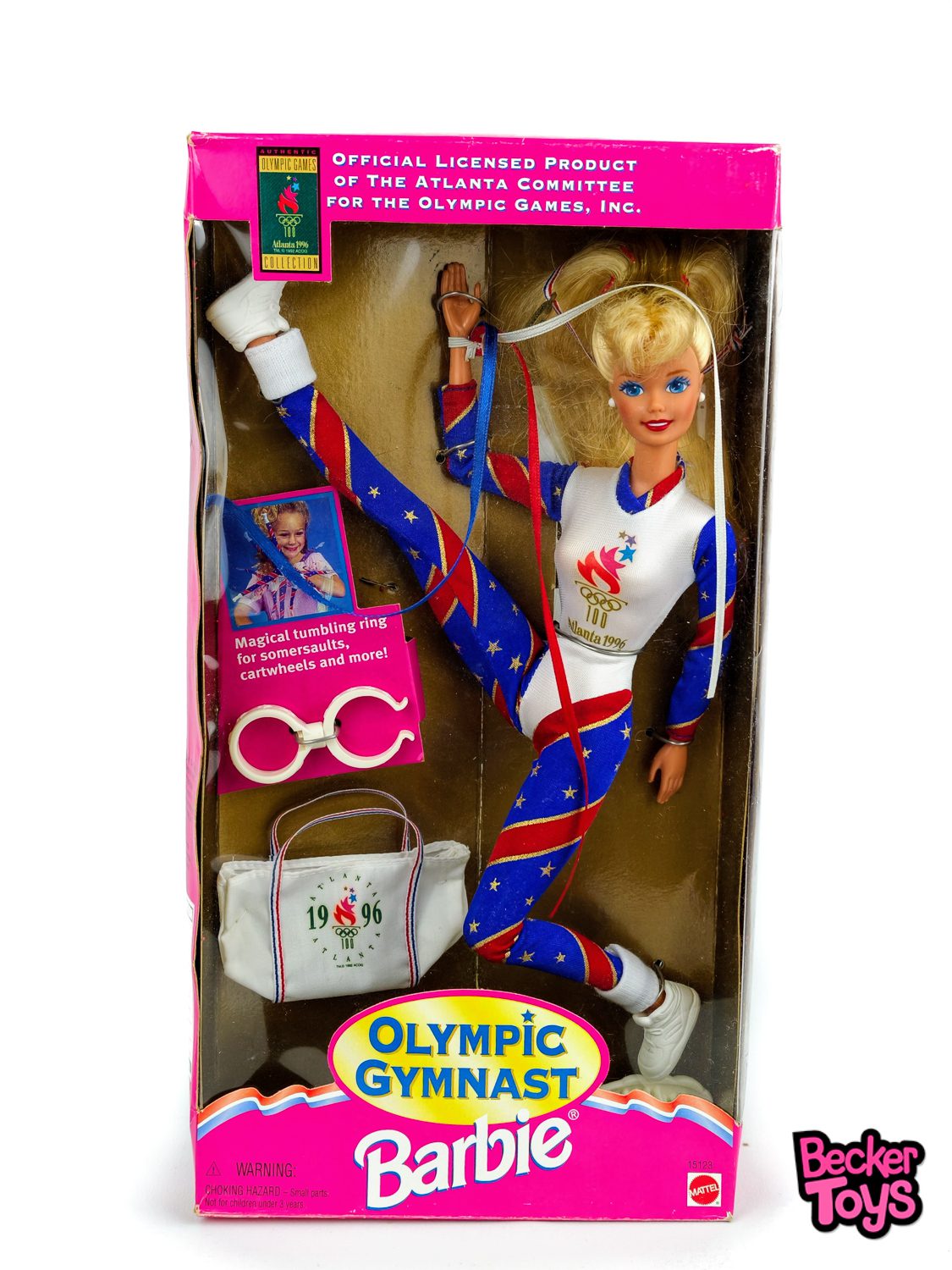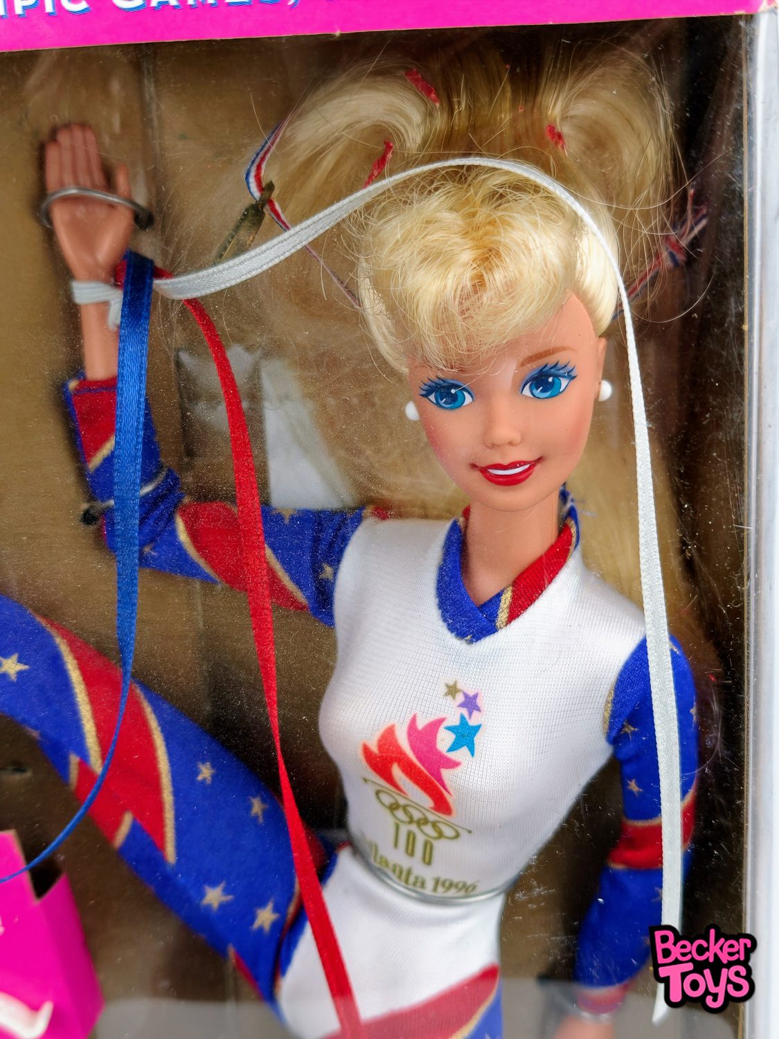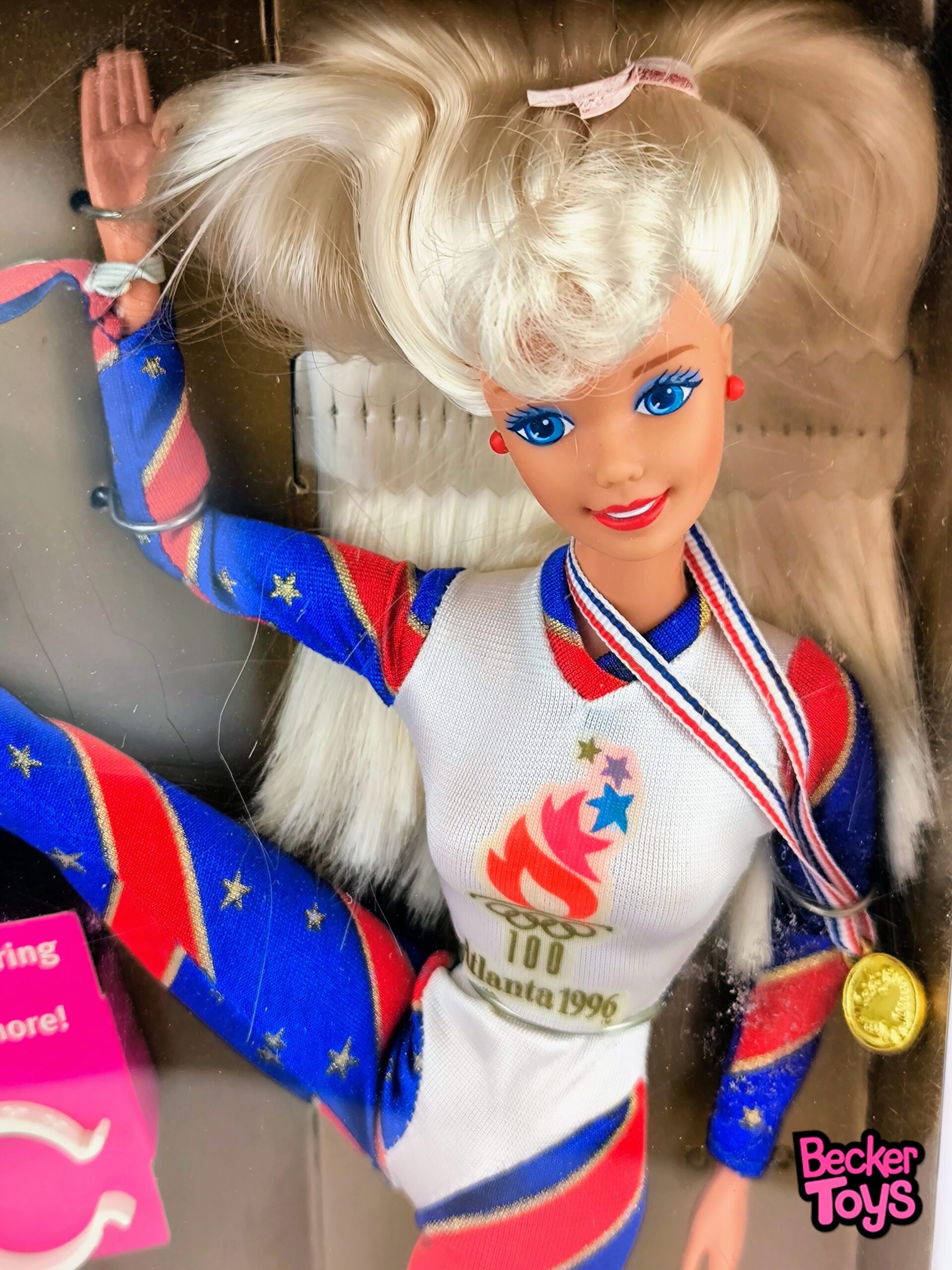 La Barbie Olympic Gymnast es una muñeca especial que celebra el espíritu de los Juegos Olímpicos. Esta edición fue lanzada en conmemoración de los Juegos Olímpicos de Atlanta 1996 y viene con un conjunto de gimnasia decorado con los colores rojo, blanco y azul, y adornado con estrellas y franjas doradas. La muñeca incluye accesorios como calcetines, zapatos blancos y una medalla de oro en una cinta con los colores de la bandera estadounidense.