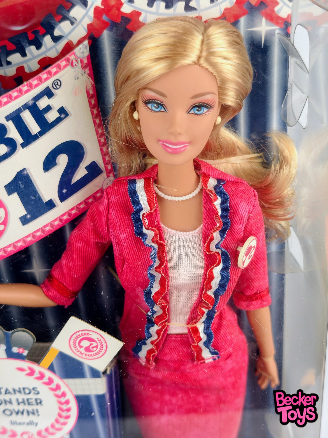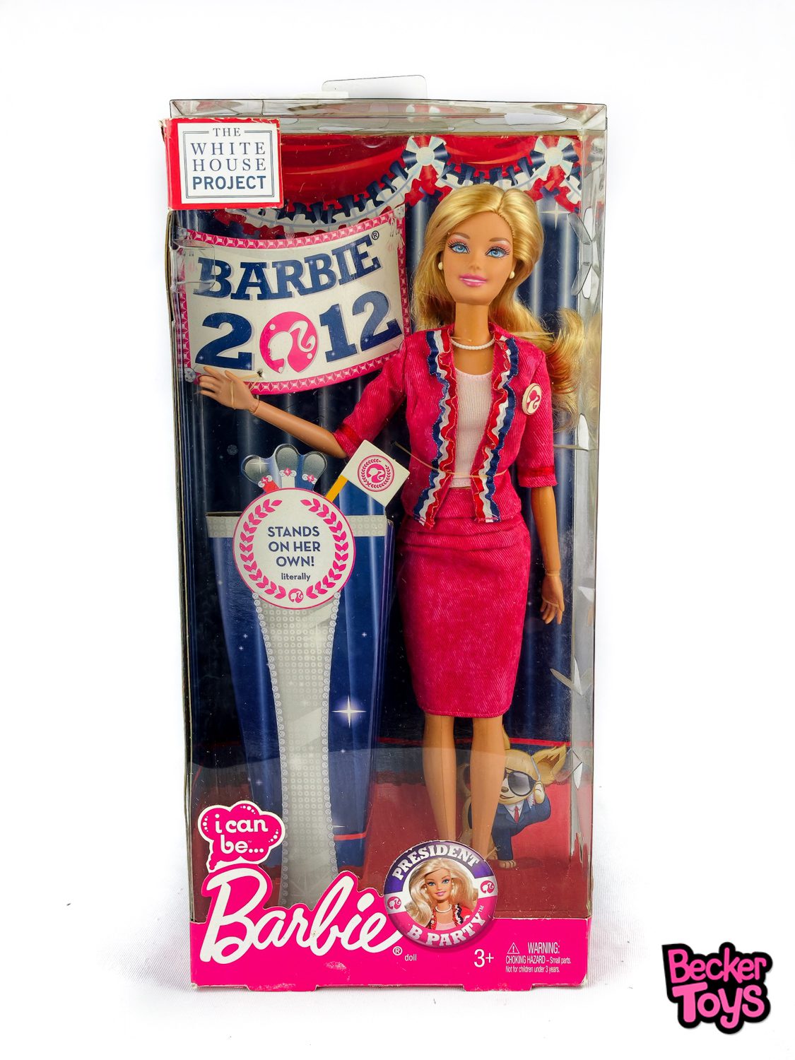 Barbie President Party (2011) – Mattel #X5323 – I Can Be… / Barbie for President Esta edición de 2011 forma parte de la iniciativa “I Can Be…”, una línea diseñada para inspirar a niñas a imaginarse en profesiones de liderazgo. Barbie President Party representa una campaña presidencial ficticia, llena de simbolismo patriótico y mensajes motivadores. Es una de las versiones más llamativas de Barbie candidata antes de la edición de 2012.