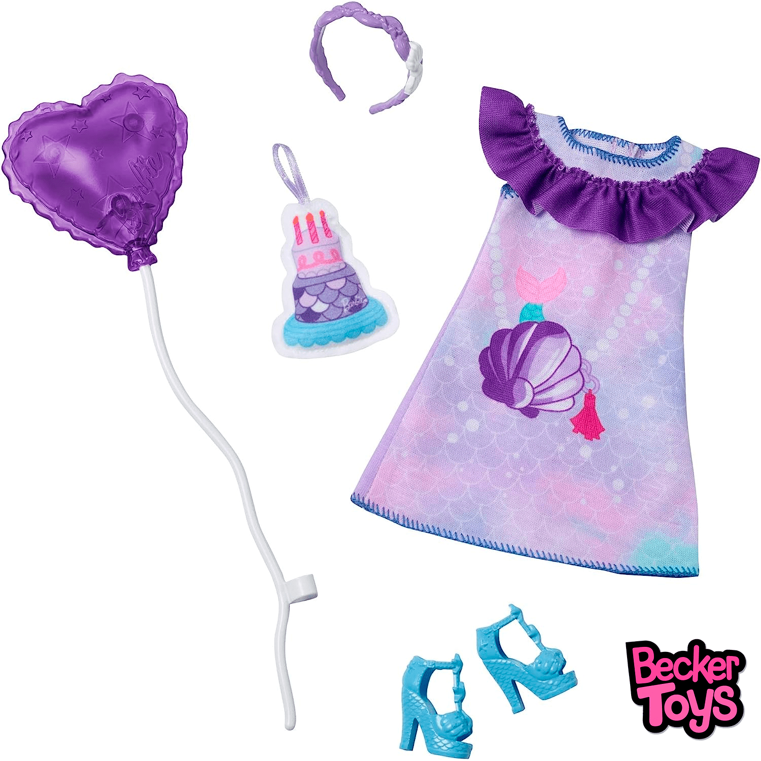 - La muñeca My First Barbie (no incluida) está lista para su fiesta de sirena con un vestido de lavanda con un gráfico de bolso de s marinas. (Ropa compatible con muñecas My First Barbie de 13.5 pulgadas)