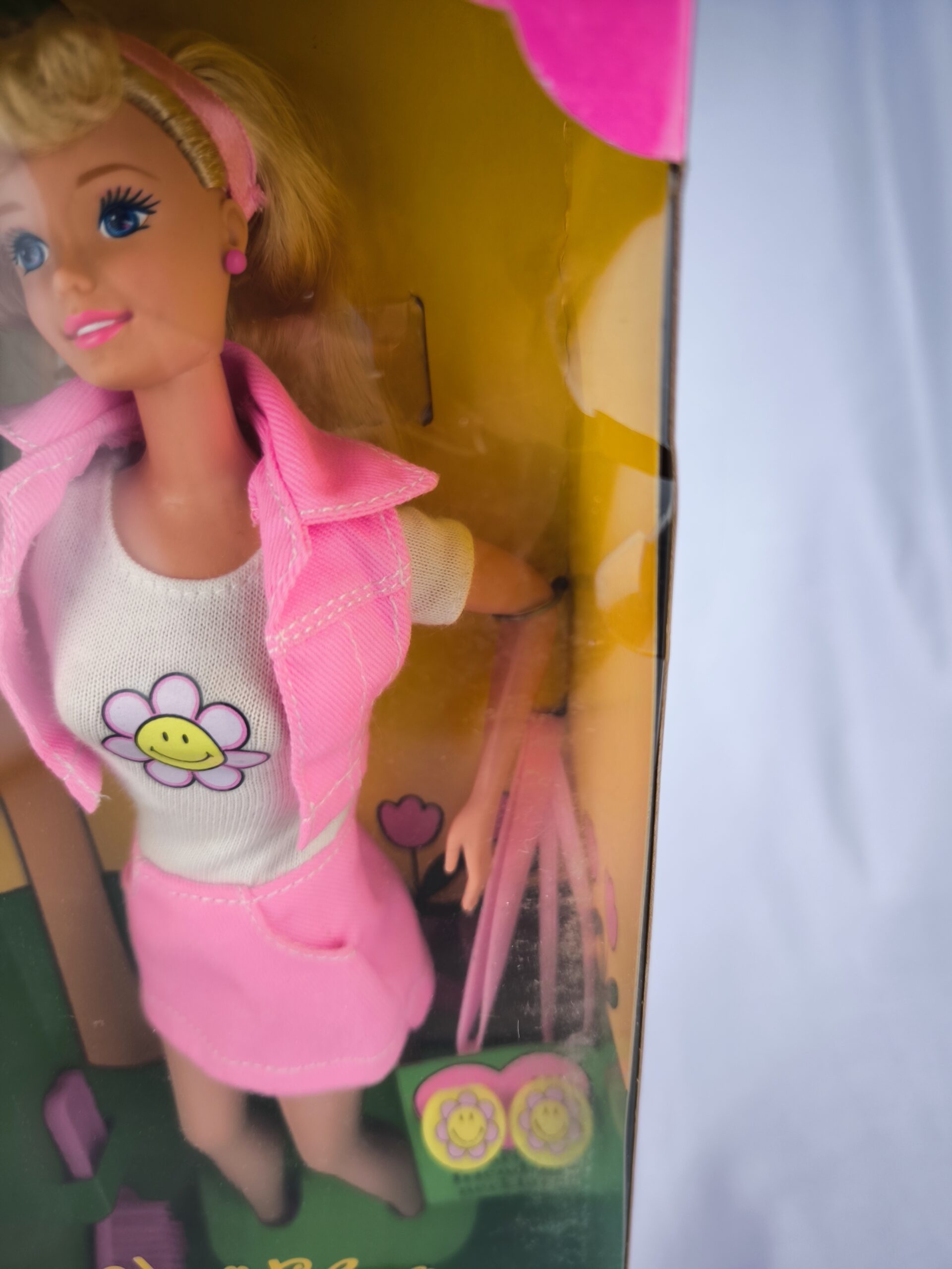 Muñeca de colección Barbie Share a Smile de 1996. Nueva, nunca sacada de la caja. Caja muy dañada con plástico amarillento.