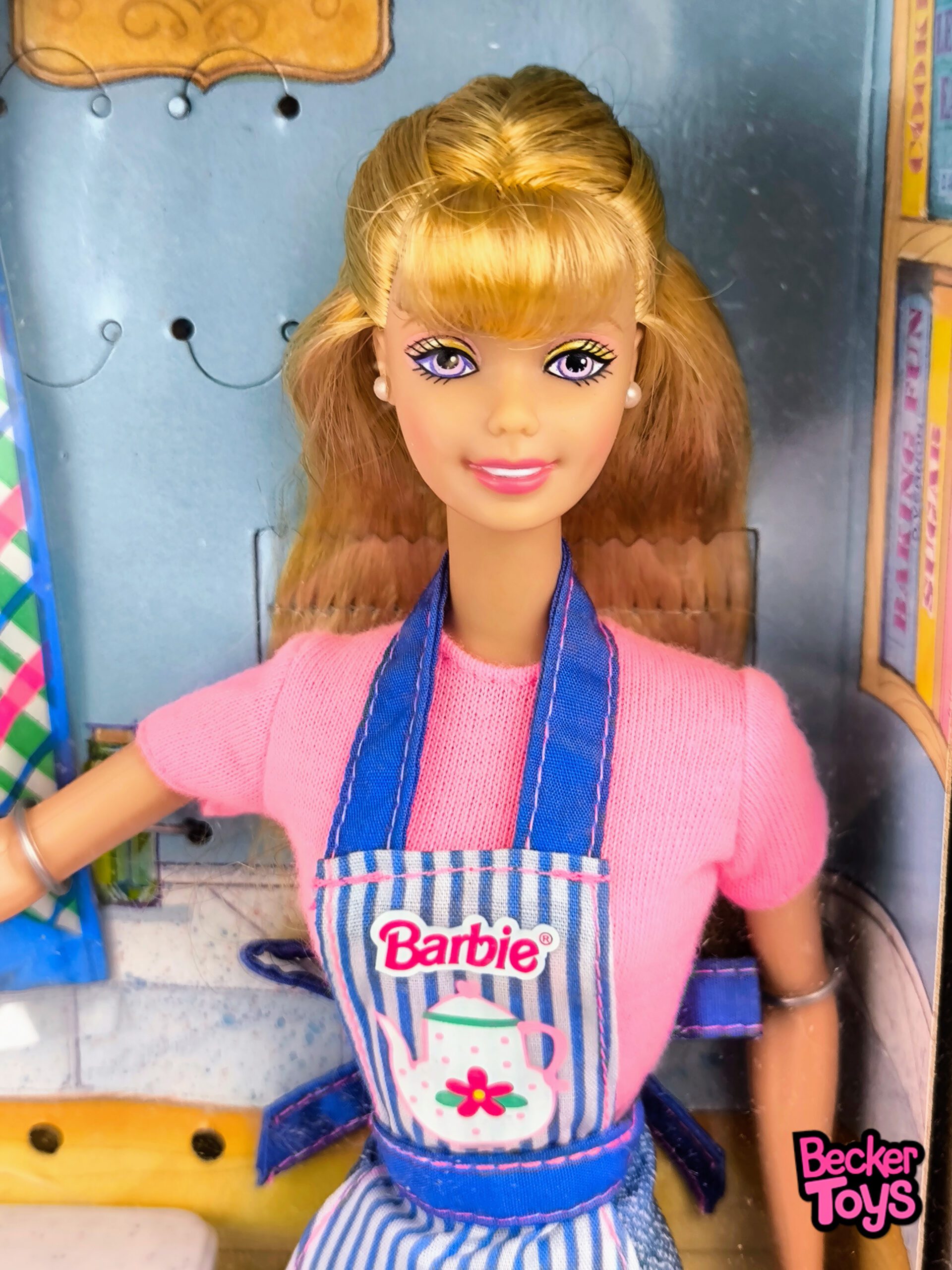 La Barbie Sweet Treats de 1998 es una edición especial que celebra la diversión de la cocina. Esta muñeca Barbie viene vestida con un atuendo de cocina que incluye un delantal y un vestido a cuadros. Además, el set incluye varios accesorios de cocina como una batidora, un bol, una mesa y utensilios de cocina.