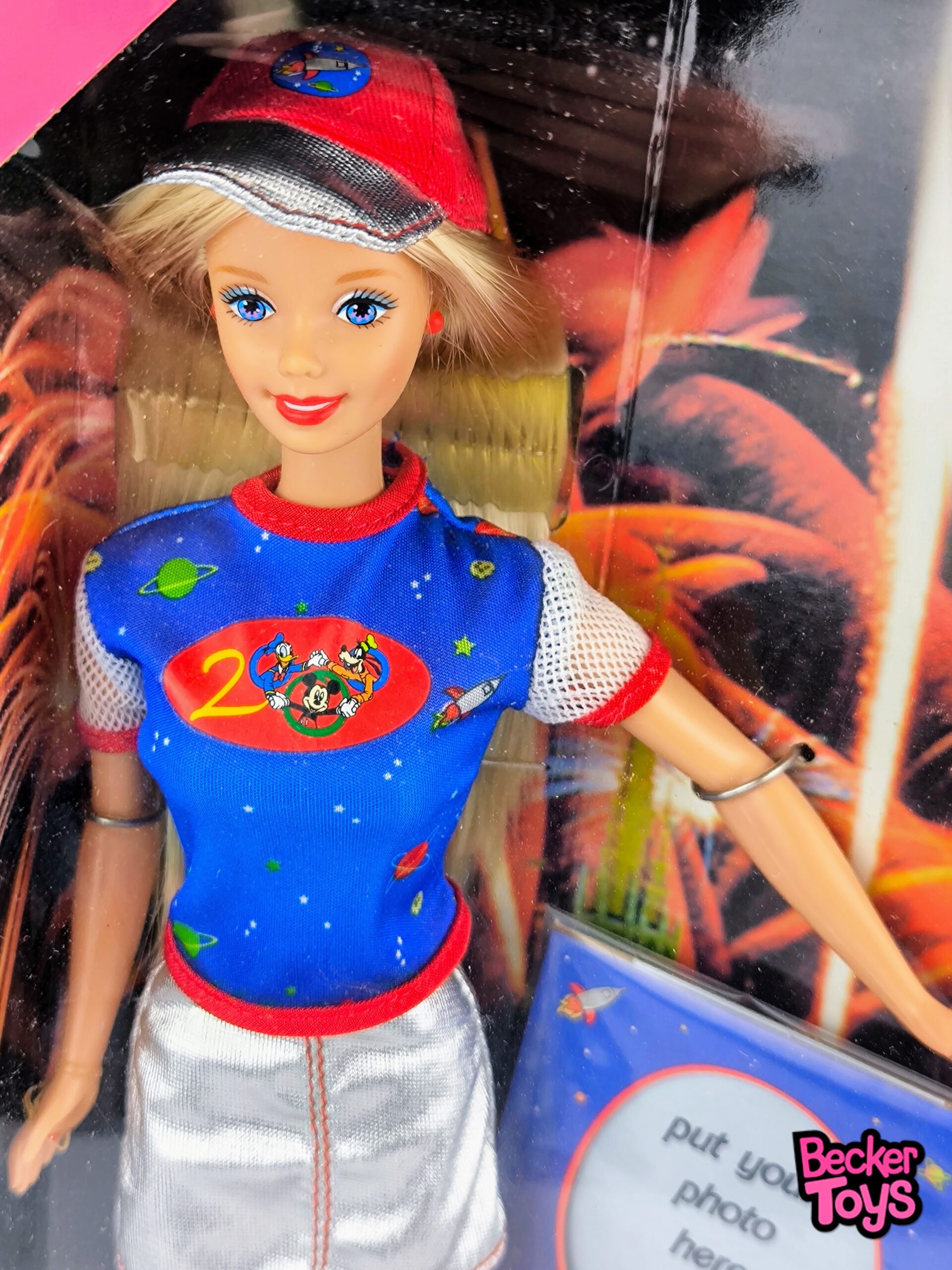 La Barbie Walt Disney World 2000 es una edición especial lanzada por Mattel para conmemorar el cambio de milenio en el famoso parque temático. Esta muñeca viene vestida con un elegante conjunto que incluye una camiseta azul con el logotipo de Walt Disney World y una falda plateada con detalles en rojo. Además lleva una gorra a juego.