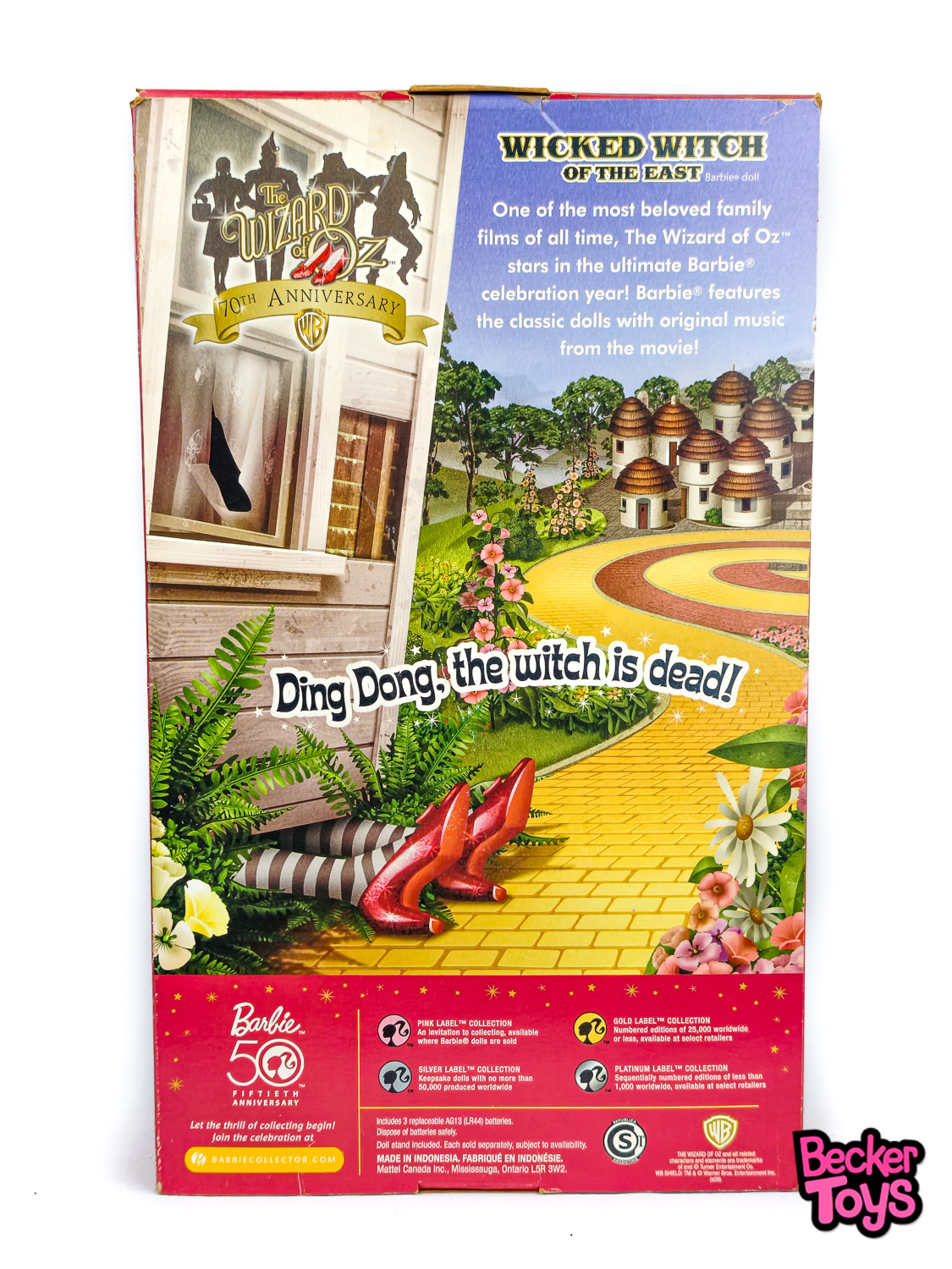 Barbie Wicked Witch of the East de 2009 en su caja original. Esta edición de Barbie Collector está inspirada en The Wizard of Oz, la clásica película de fantasía de Disney/Warner, y recrea al personaje Wicked Witch of the East dentro de la colección del 70th Anniversary.