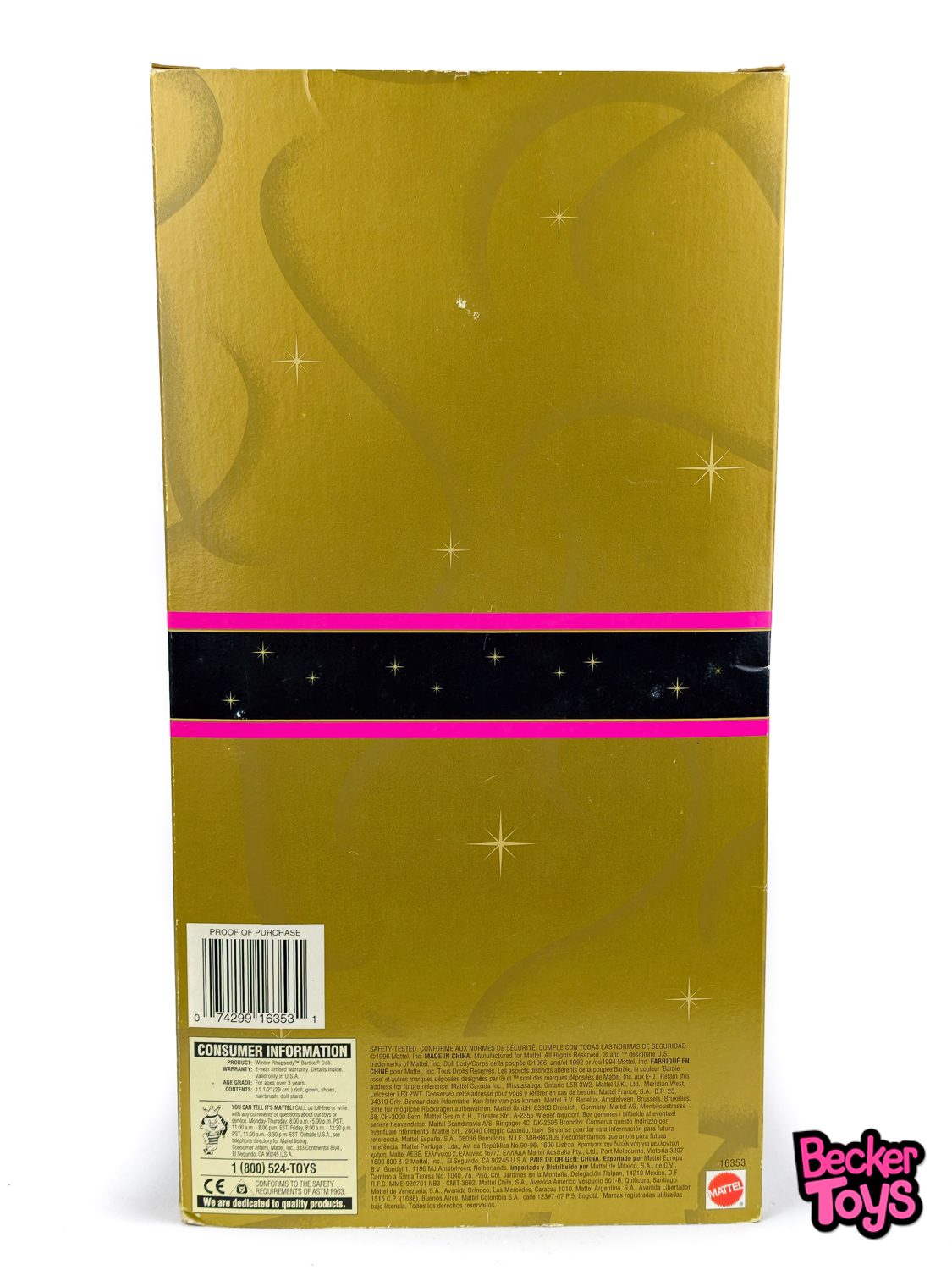 - Comprar en Becker Toys es más que adquirir una muñeca o juguete de colección: es vivir una experiencia de confianza, calidad y atención al detalle. Todos nuestros productos son 100% originales, y cada pedido se embala cuidadosamente con materiales protectores para que tu pedido llegue en perfecto estado, lista para brillar en tu colección.