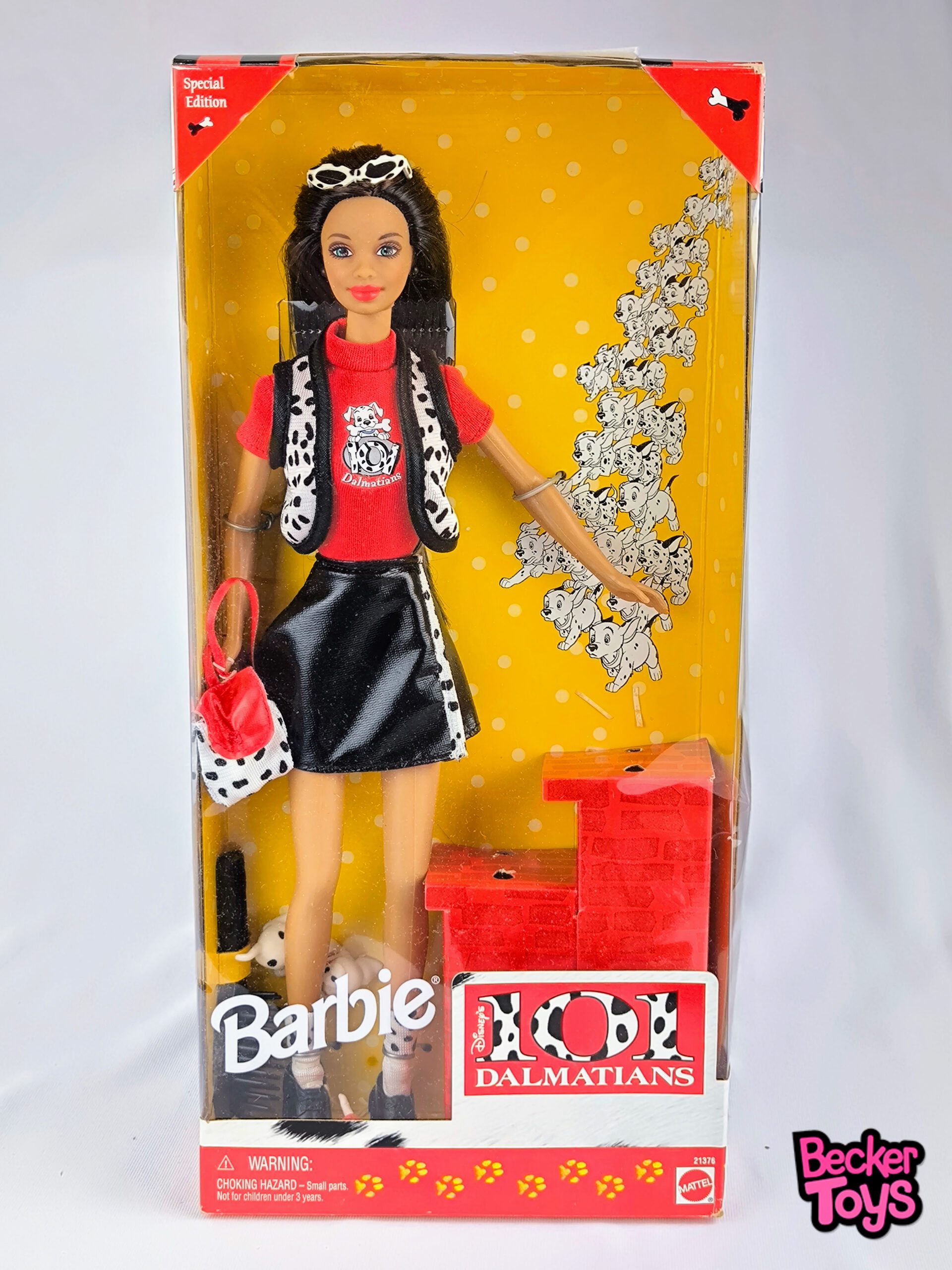 🐾 Barbie 101 Dalmatians AA (1999) – Mattel #21378 Esta edición especial de 1999 celebra la colaboración entre Barbie y Disney con una versión afroamericana vibrante y juguetona inspirada en la película 101 Dálmatas. Parte de la línea Special Edition, esta muñeca combina moda urbana noventera con el encanto perruno de los cachorros más famosos del cine.