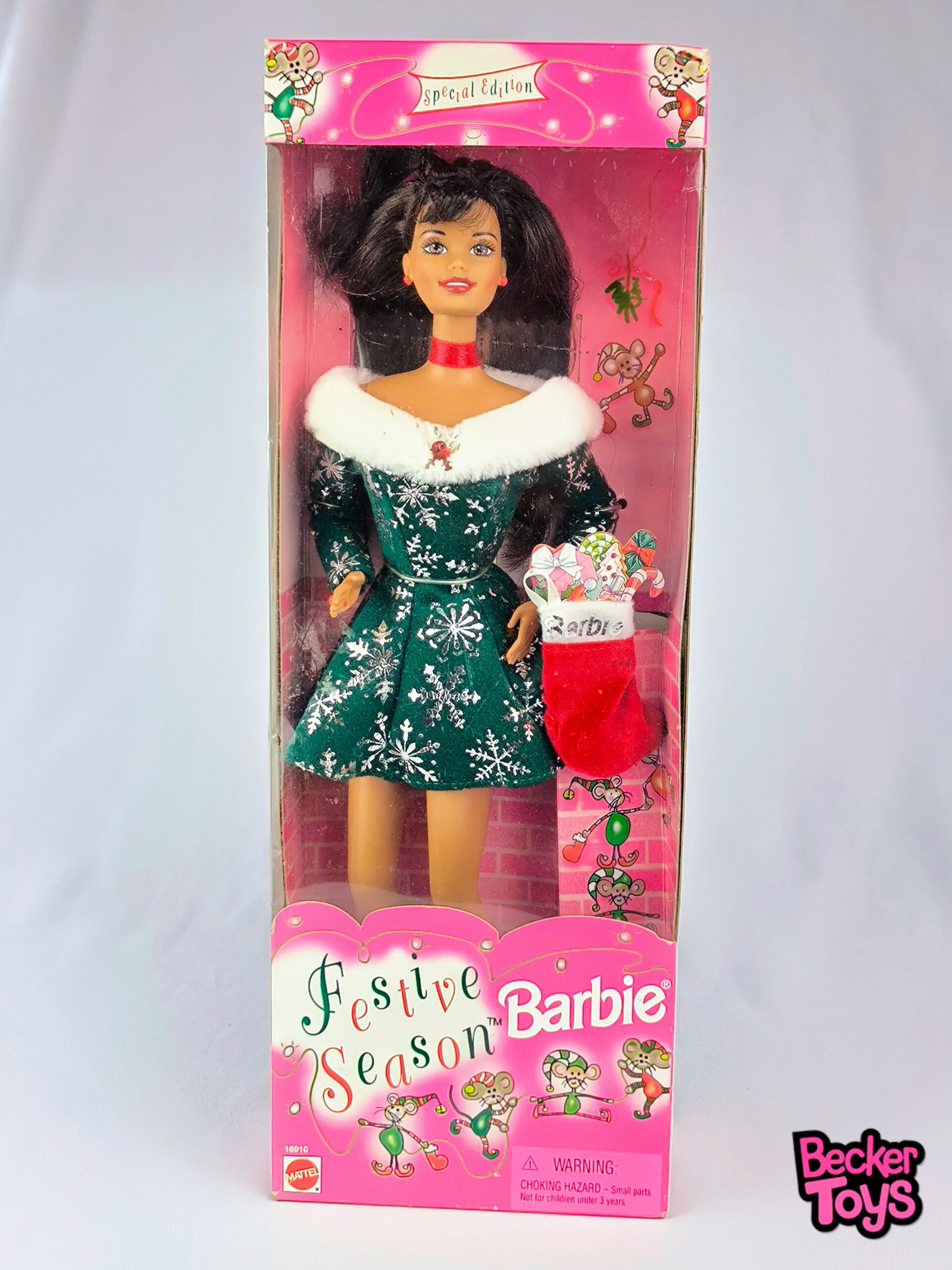 La Christie Festive Season de 1997 es una edición especial navideña que forma parte de la línea “Special Edition” de Mattel. Esta muñeca celebra la temporada con un estilo alegre y elegante, destacando por su vestuario verde decorado con copos de nieve y su inclusión de accesorios festivos. Es una pieza encantadora dentro de las Barbies afroamericanas de temática navideña.