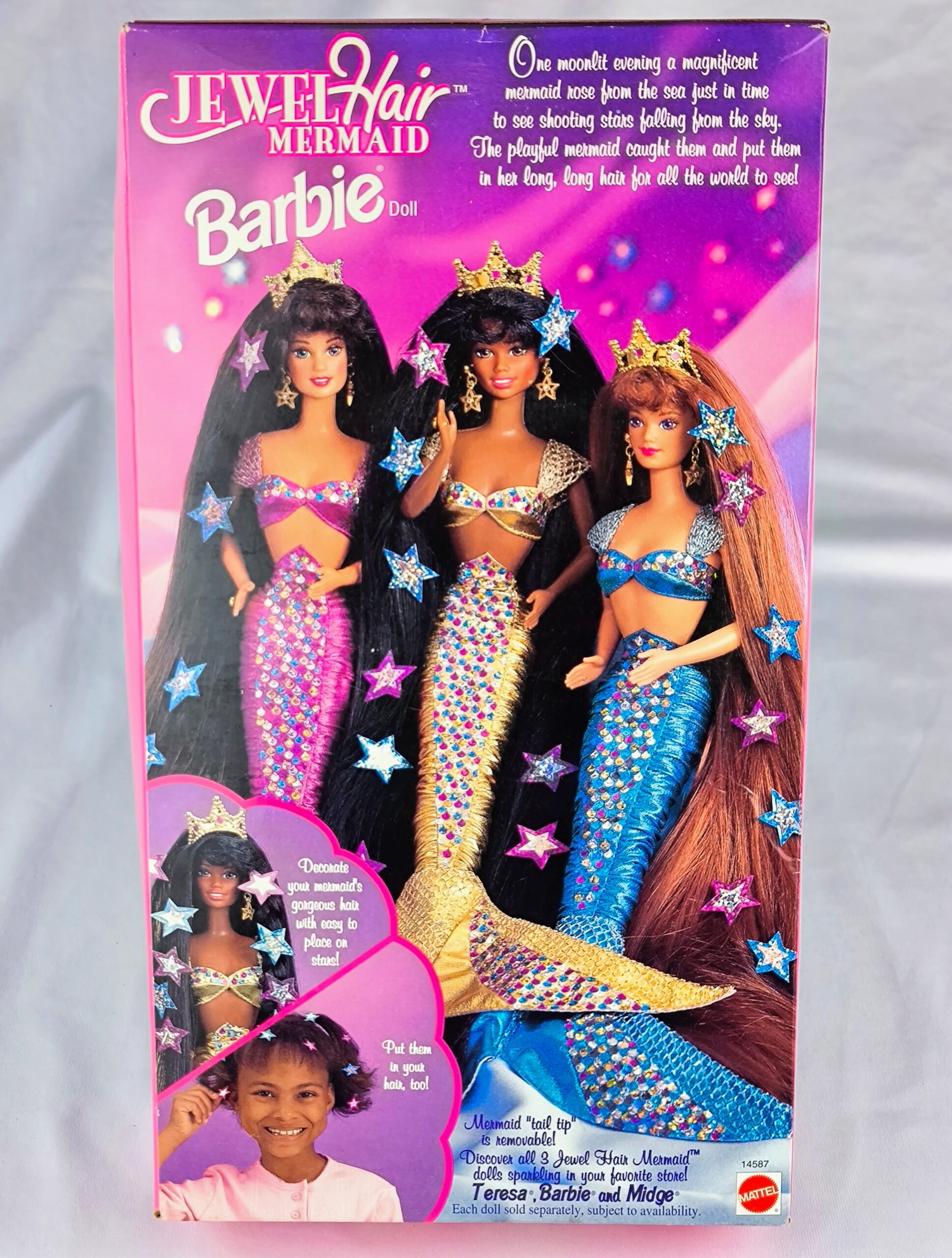 Muñeca Barbie de colección Christie Jewel Hair Mermaid de 1995. Nueva. Nunca sacada de la caja, caja dañada.