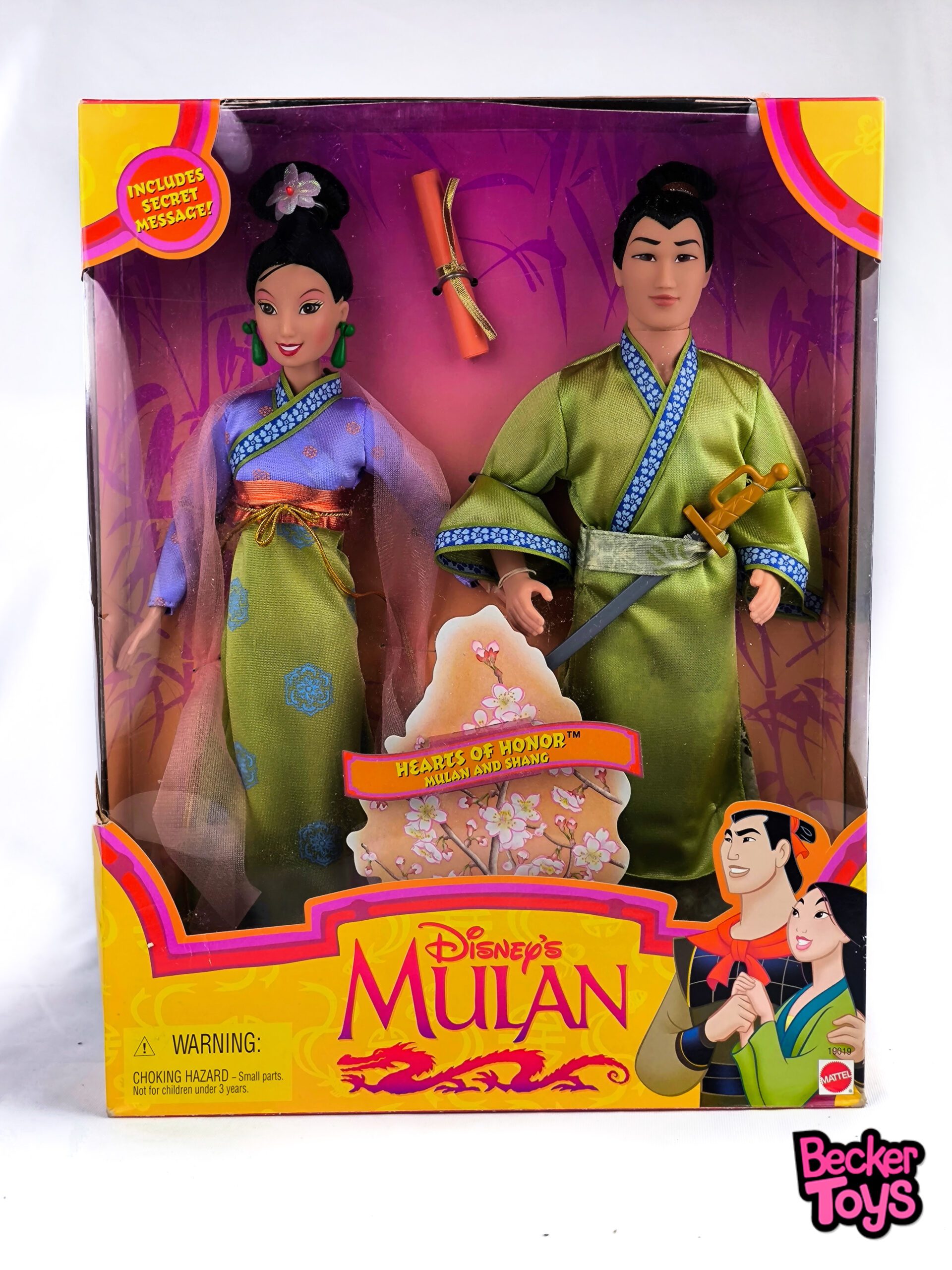 Giftset de colección Disney Mulan & Shang Hearts of Honor de 1997. Nuevos, nunca sacados de la caja. Caja dañada.