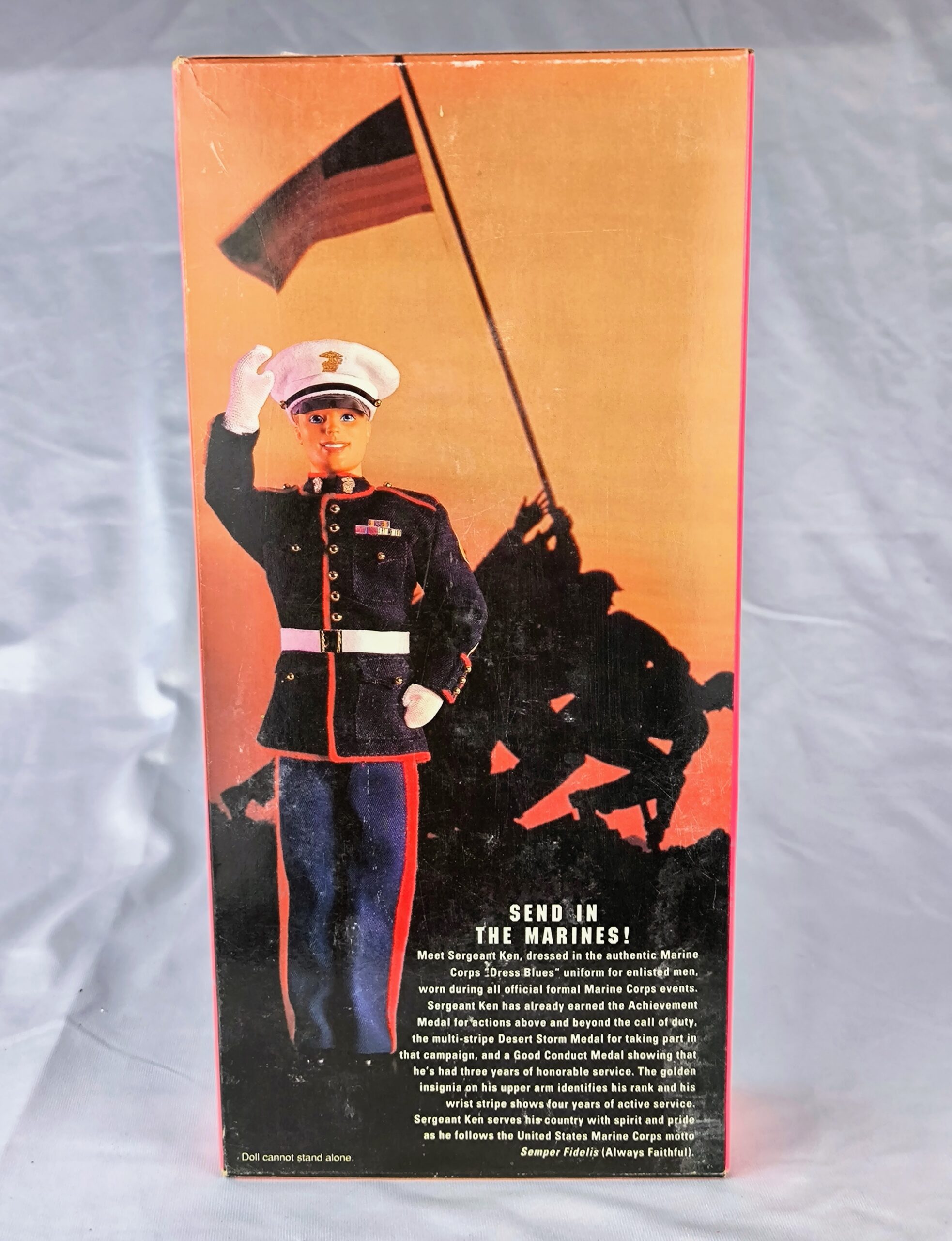 Ken Marine Corps Stars ‘N Stripes de 1991 es una edición especial que presenta a Sargento Ken. Al igual que su contraparte Barbie, Ken está vestido con el uniforme «Dress Blues» del Cuerpo de Marines de los Estados Unidos. Este uniforme incluye una chaqueta azul marino con botones dorados y ribetes rojos, pantalones azul marino, una gorra blanca y guantes blancos.