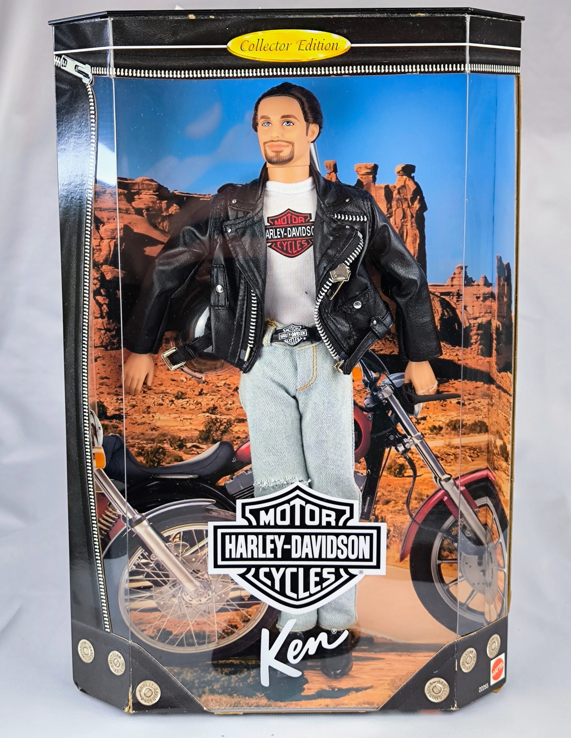 El Ken #1 de Harley Davidson es una figura de acción de Mattel que representa a Ken, el personaje icónico de la serie de muñecos Ken y Barbie. Este modelo específico, lanzado en 1998, es conocido por su apariencia cool y su estilo característico. Viste un chaqueta de cuero falso negro con el logotipo de Harley Davidson en la espalda, una camiseta de Harley Davidson y jeans desgastados. Además, tiene ojos azules, un peinado en cola de caballo y una barba, lo que le da un aspecto distintivo y atractivo. Es una pieza valiosa para los coleccionistas de muñecas y seguidores de la cultura Harley Davidson.