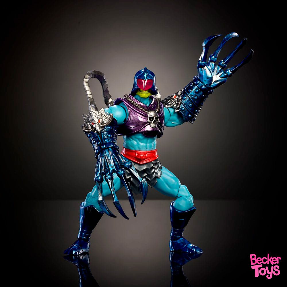 Terror Claws Skeletor irrumpe en la línea Masterverse: New Eternia con una reinterpretación poderosa y amenazante del villano más icónico de Eternia. Esta figura de 18 cm combina estética clásica con un diseño renovado, incorporando enormes garras mecánicas y detalles de armadura que realzan su presencia intimidante.