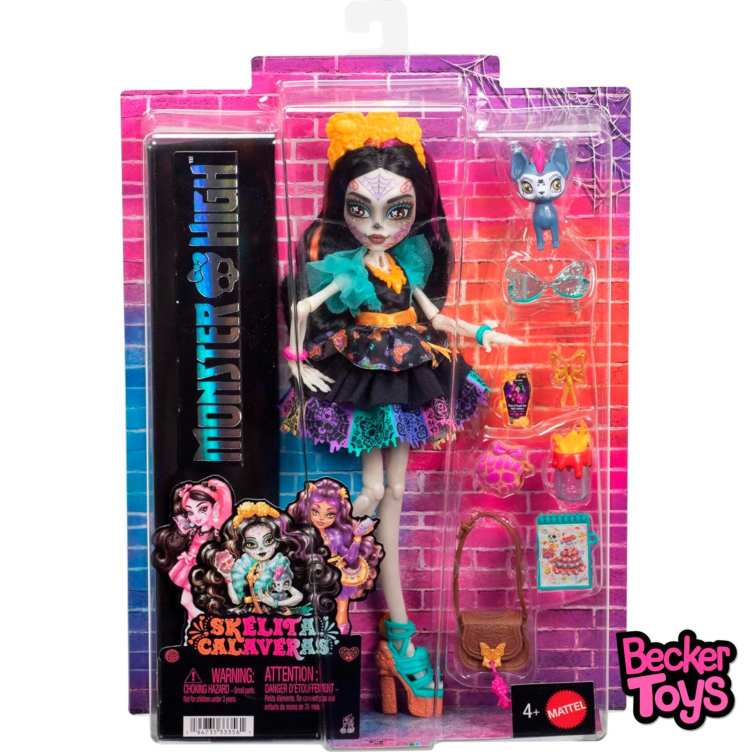 • ¡La muñeca Skelita Calaveras de Monster High es una criatura esquelética aterradoramente creativa a la que le encanta el diseño de moda y la magia! Viene con una mascota adorable y un montón de accesorios coloridos.