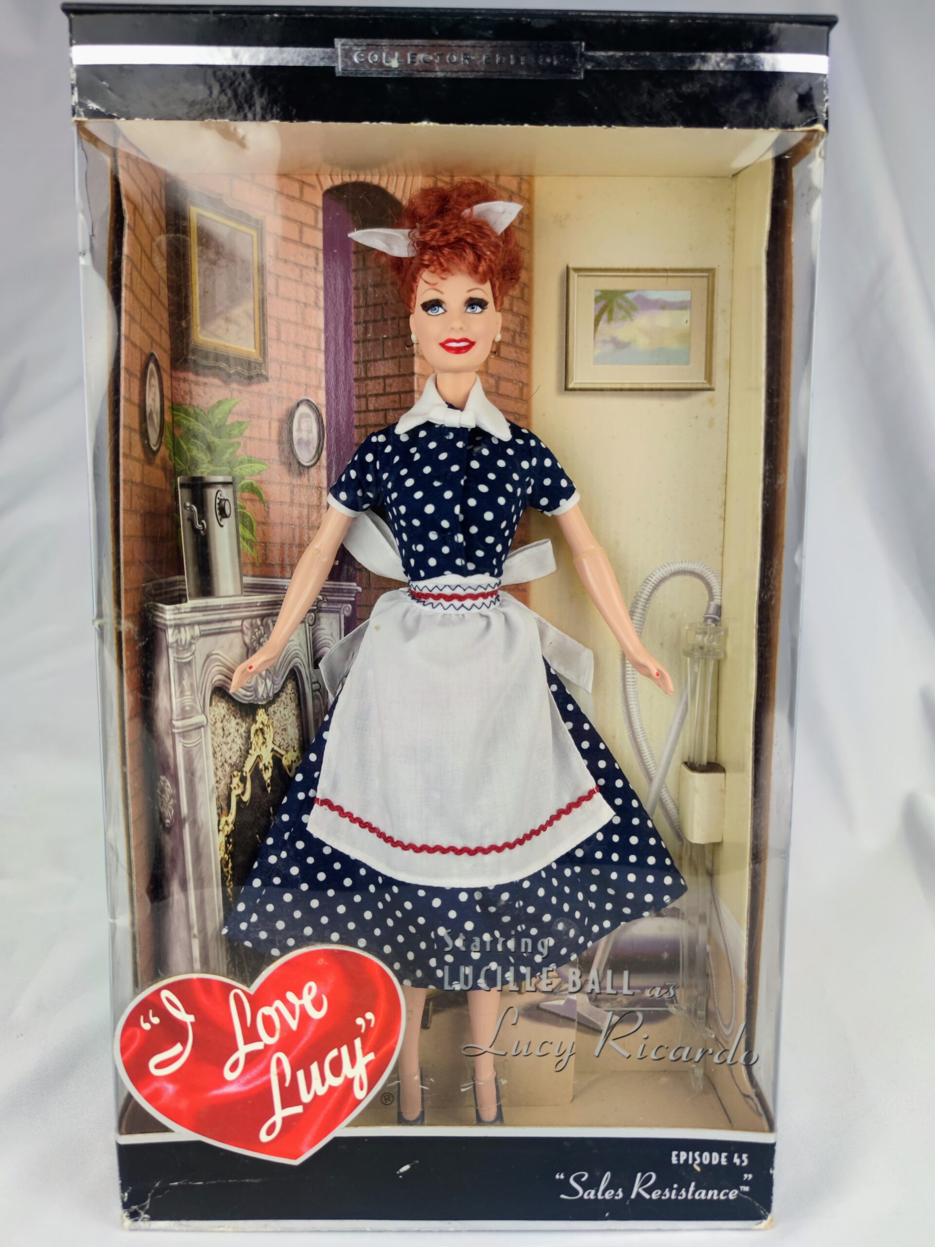 I Love Lucy Episode 45 Sales Resistance es una muñeca de colección lanzada por Mattel en 2004. Esta muñeca estilo Barbie está inspirada en el icónico episodio «Sales Resistance» de la serie «I Love Lucy», que se emitió originalmente el 26 de enero de 1953.