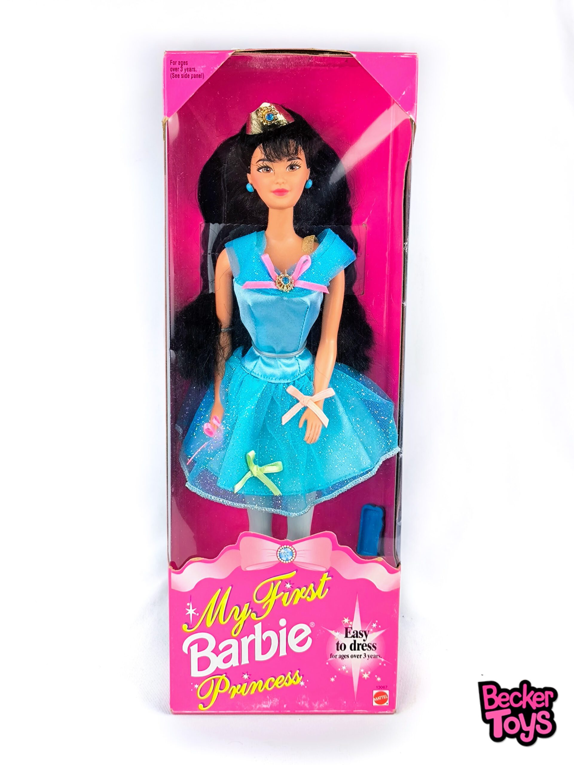 👑 My First Kira Princess (1994) – Mattel #13027 – Easy to Dress Series Esta edición de 1994 forma parte de la línea My First Barbie, diseñada especialmente para niñas pequeñas que comienzan a jugar con muñecas. My First Kira Princess se destaca por su enfoque inclusivo y funcional, combinando la estética de cuento de hadas con características pensadas para facilitar el juego.