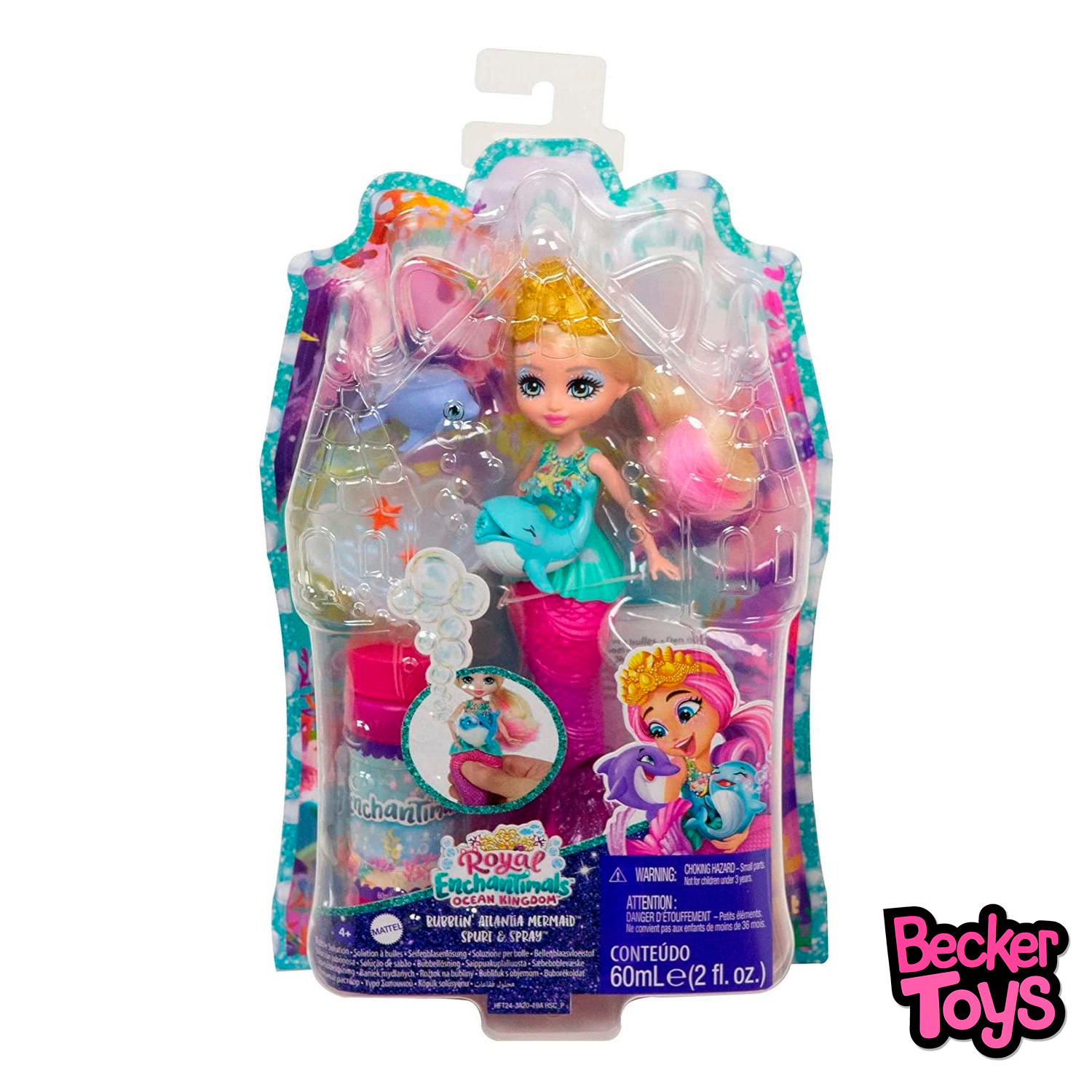 - También incluye a su amiga delfín Spray. Las pequeñas disfrutarán recreando el vínculo especial que une a estos personajes de Enchantimals con alegría, magia y muchas pompas.